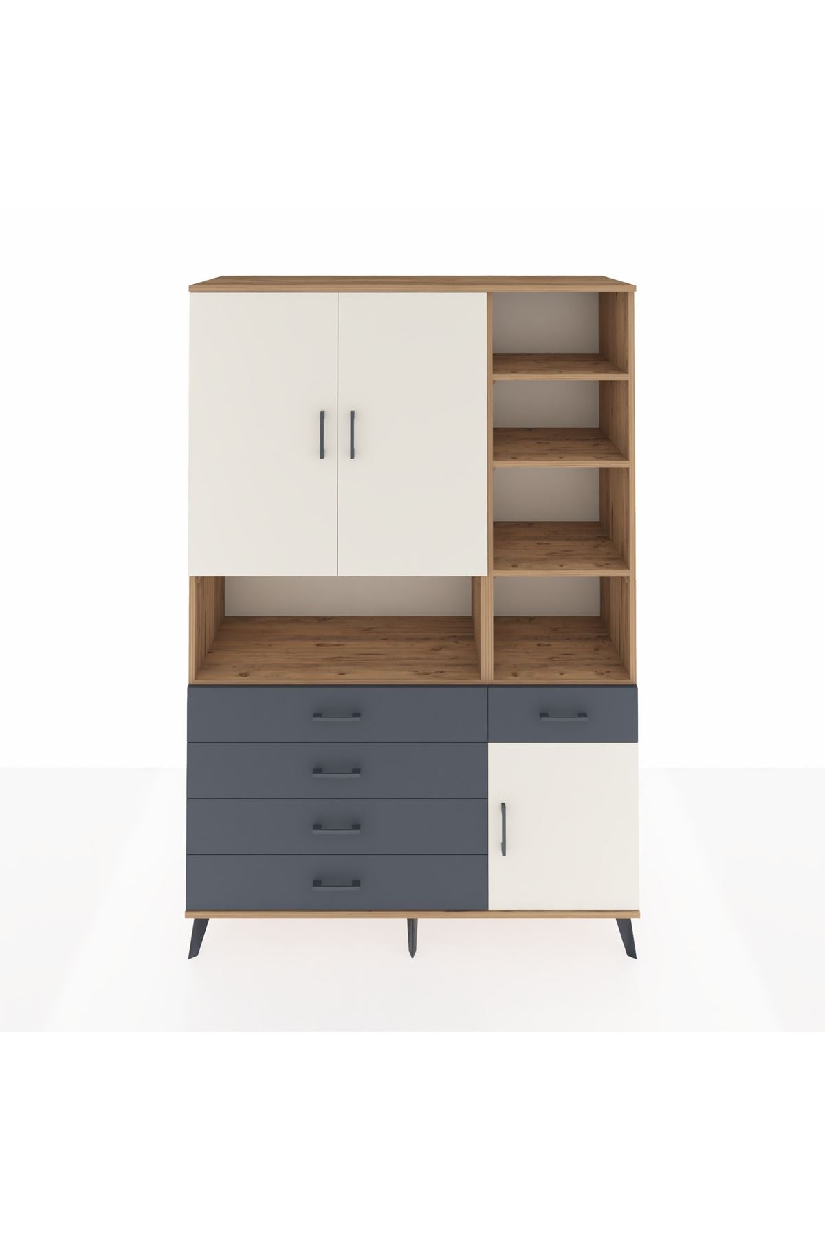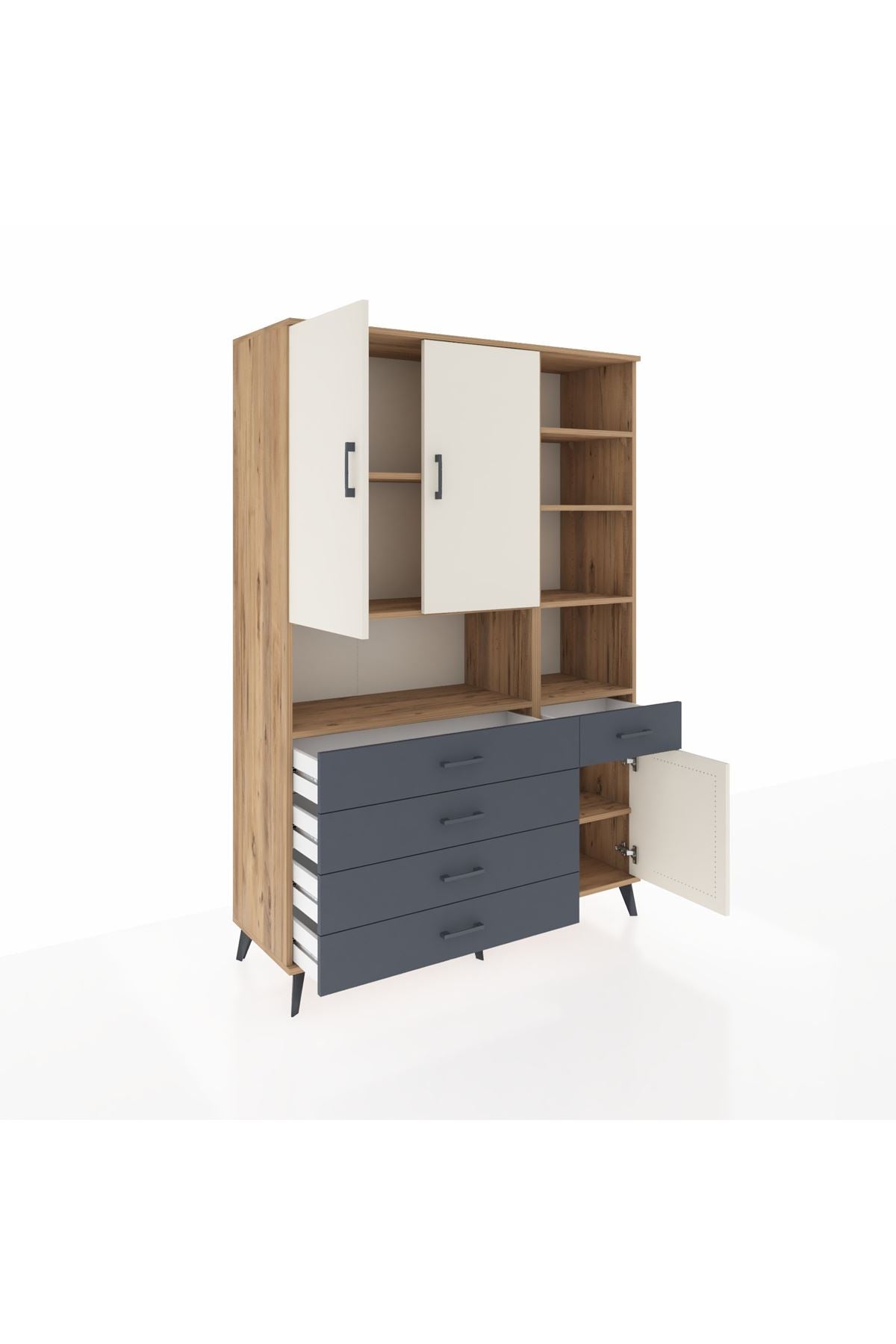 Hyperion Dolap 8 Raflı 5 Çekmeceli 3 Kapaklı 132x44x195 Çam-Aytaşı/Antrasit