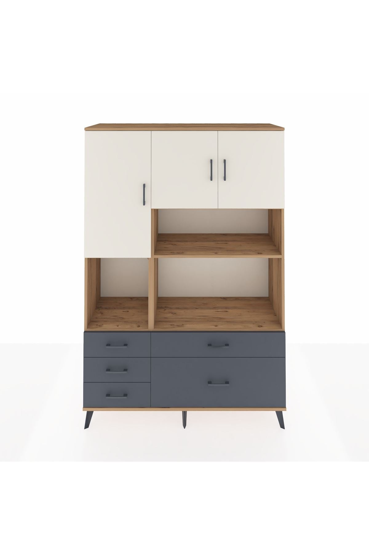 Hyperion Dolap 8 Raflı 5 Çekmeceli 3 Kapaklı 132x44x195 Çam-Aytaşı/Antrasit