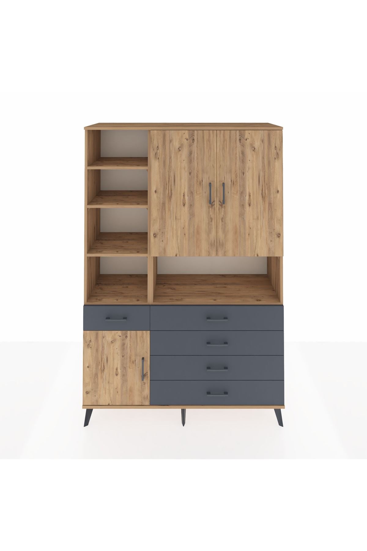 Hyperion Dolap 8 Raflı 5 Çekmeceli 3 Kapaklı 132x44x195 Çam-Çam/Antrasit
