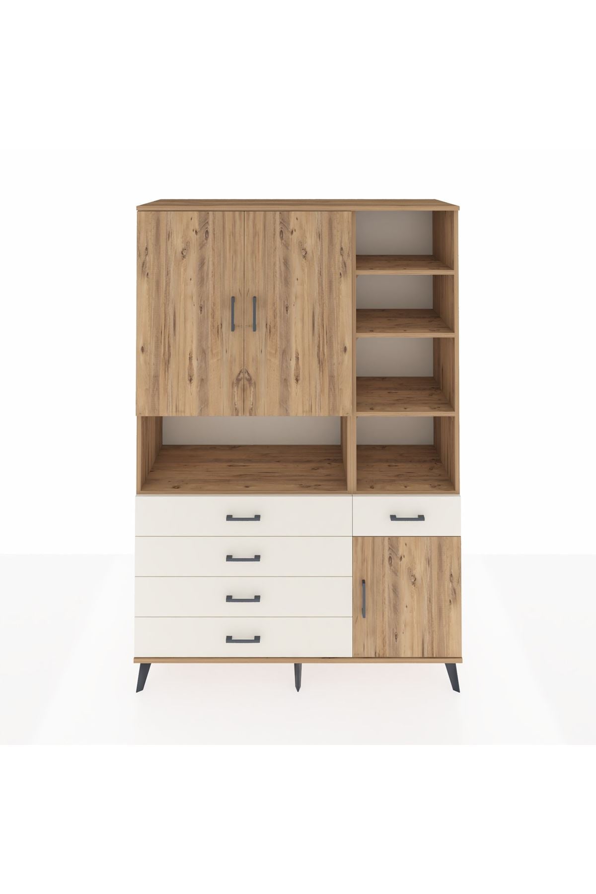 Hyperion Dolap 8 Raflı 5 Çekmeceli 3 Kapaklı 132x44x195 Çam-Çam/Aytaşı