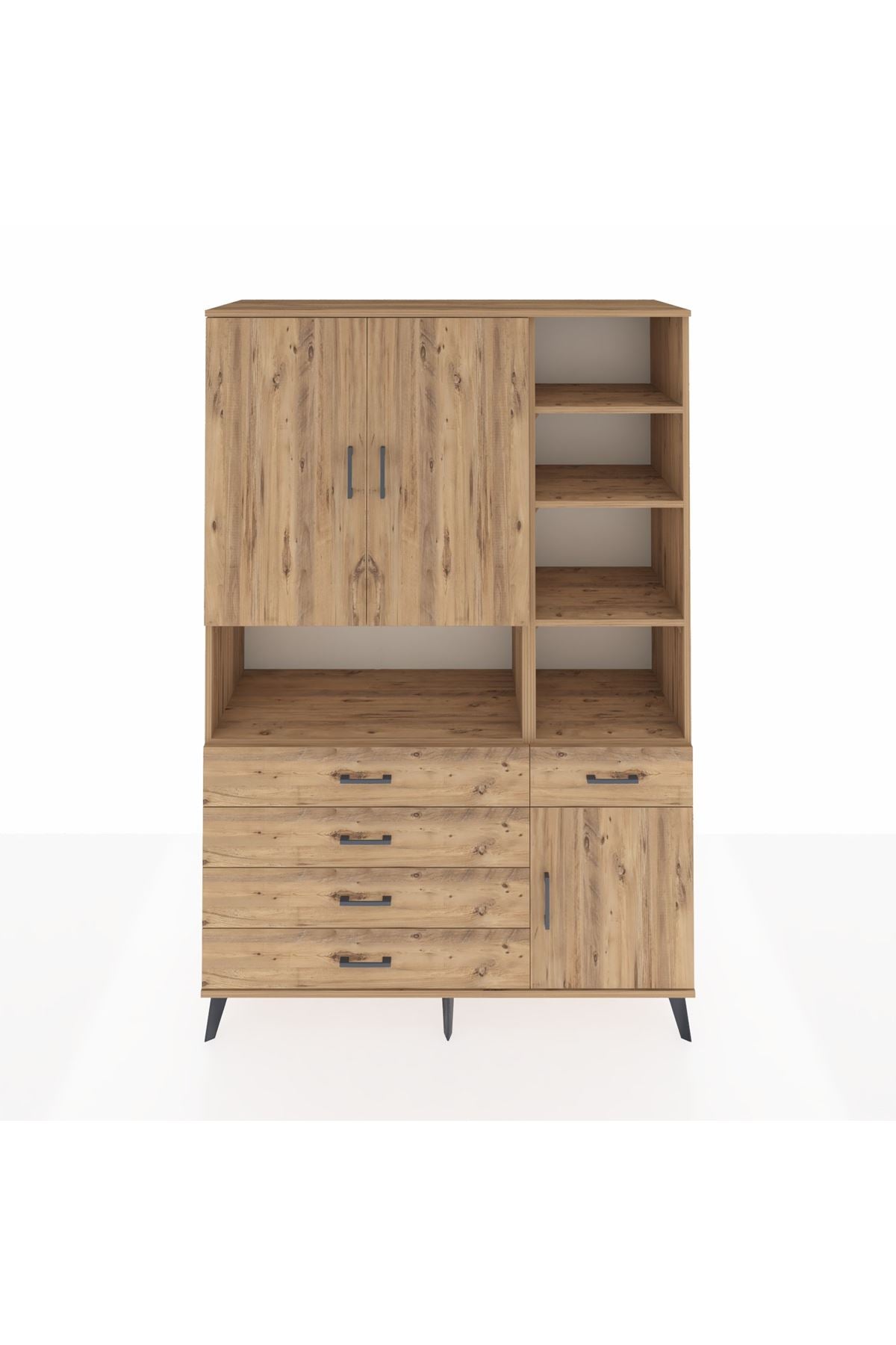 Hyperion Dolap 8 Raflı 5 Çekmeceli 3 Kapaklı 132x44x195 Çam-Çam/Çam