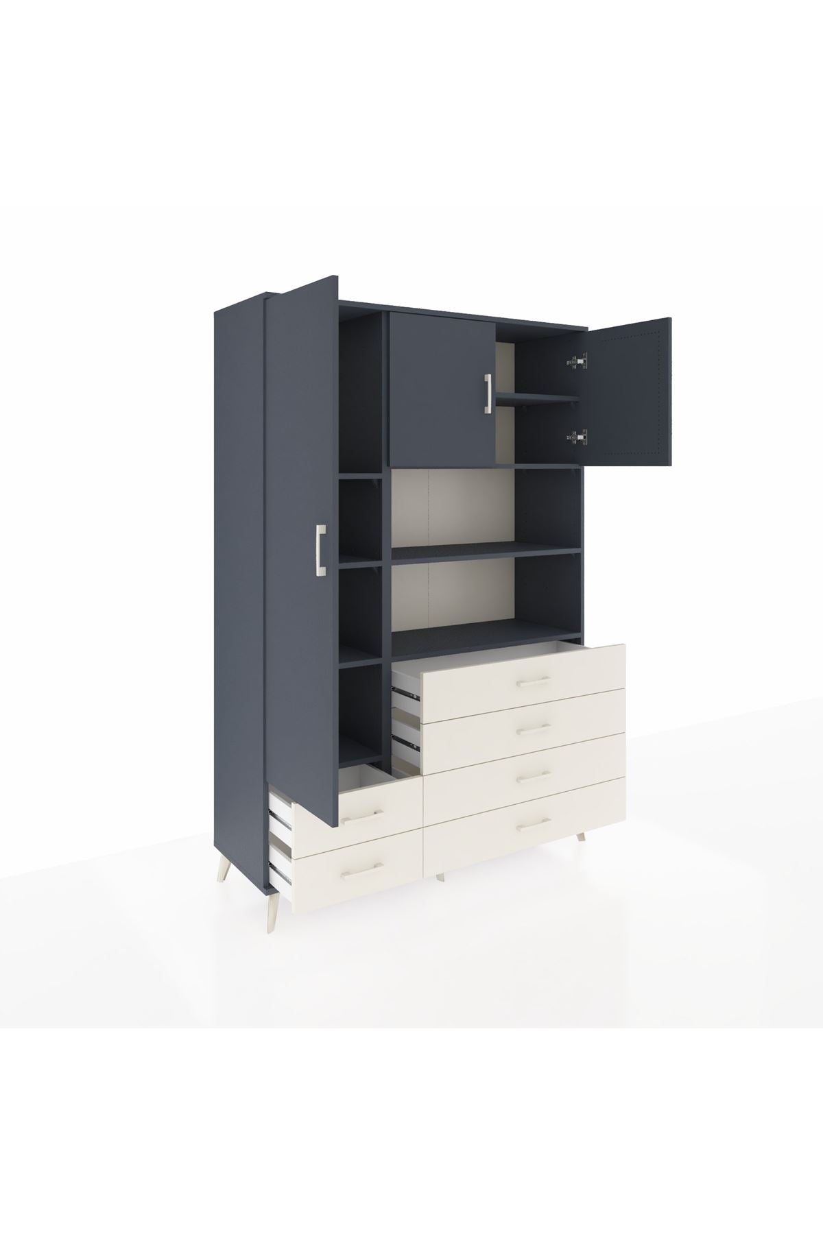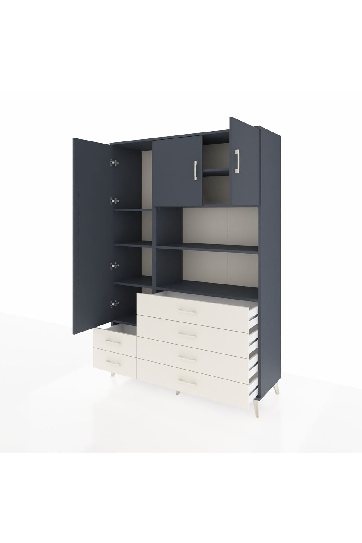 Hyperion Dolap 8 Raflı 6 Çekmeceli 3 Kapaklı 132x44x195 Antrasit-Antrasit/Aytaşı