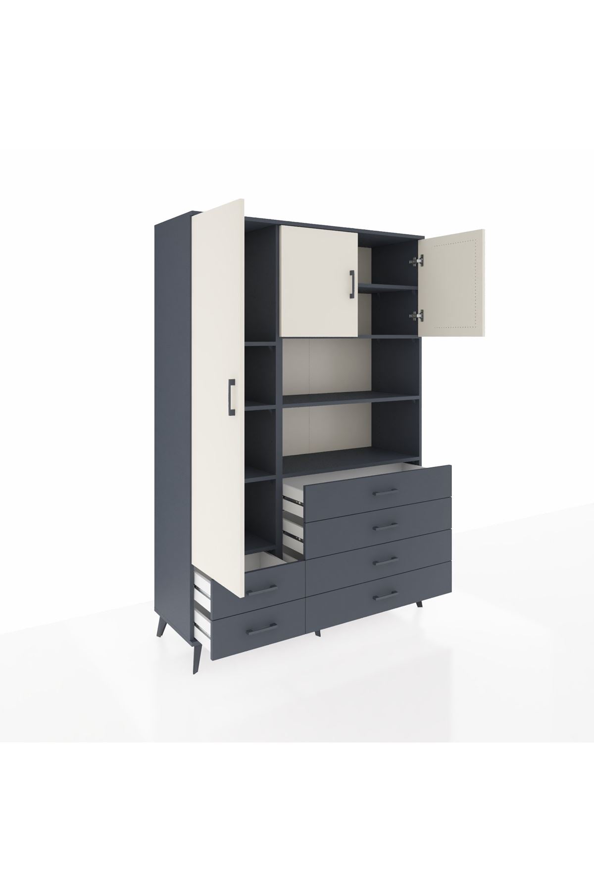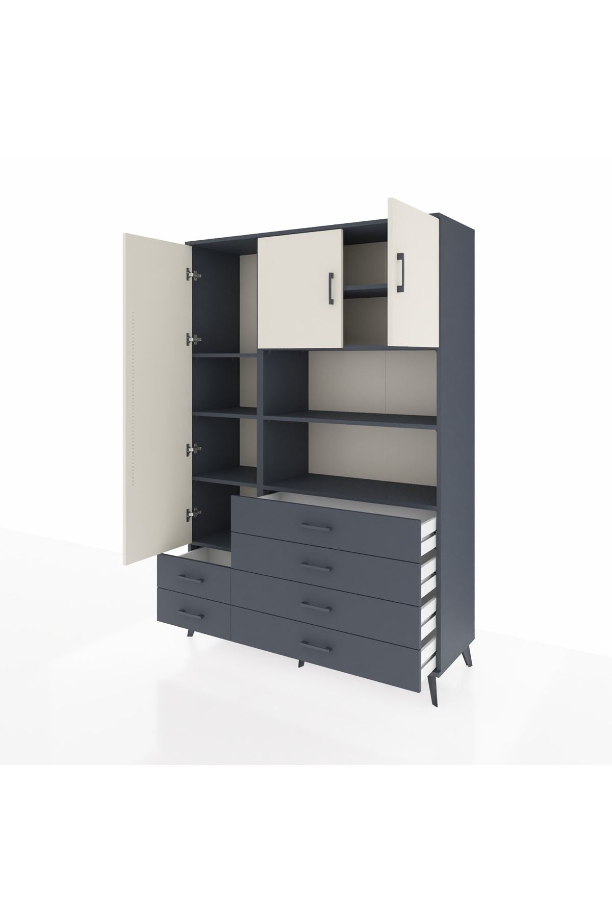 Hyperion Dolap 8 Raflı 6 Çekmeceli 3 Kapaklı 132x44x195 Antrasit-Aytaşı/Antrasit