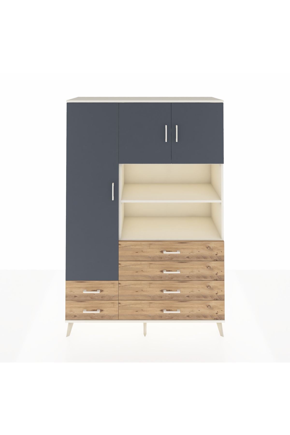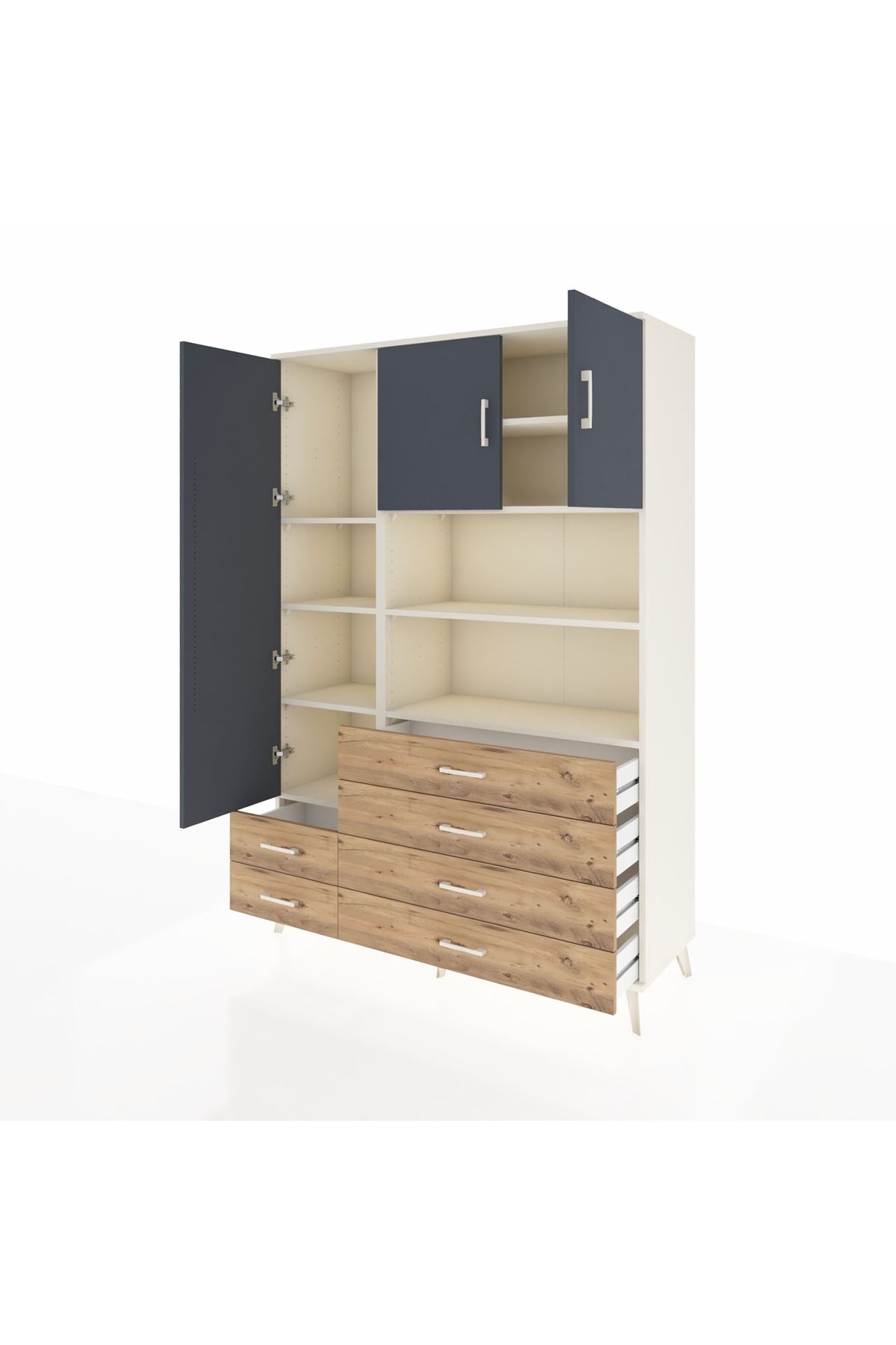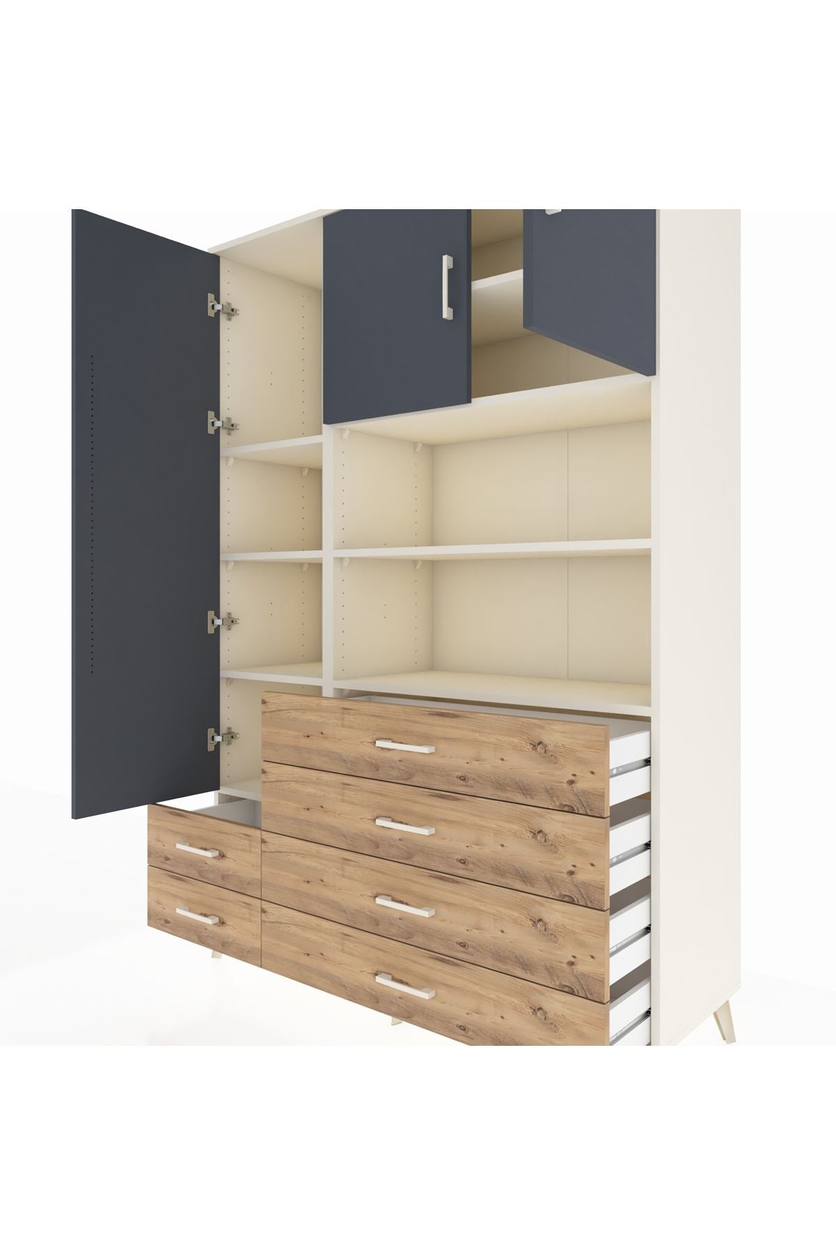 Hyperion Dolap 8 Raflı 6 Çekmeceli 3 Kapaklı 132x44x195 Aytaşı-Antrasit/Çam