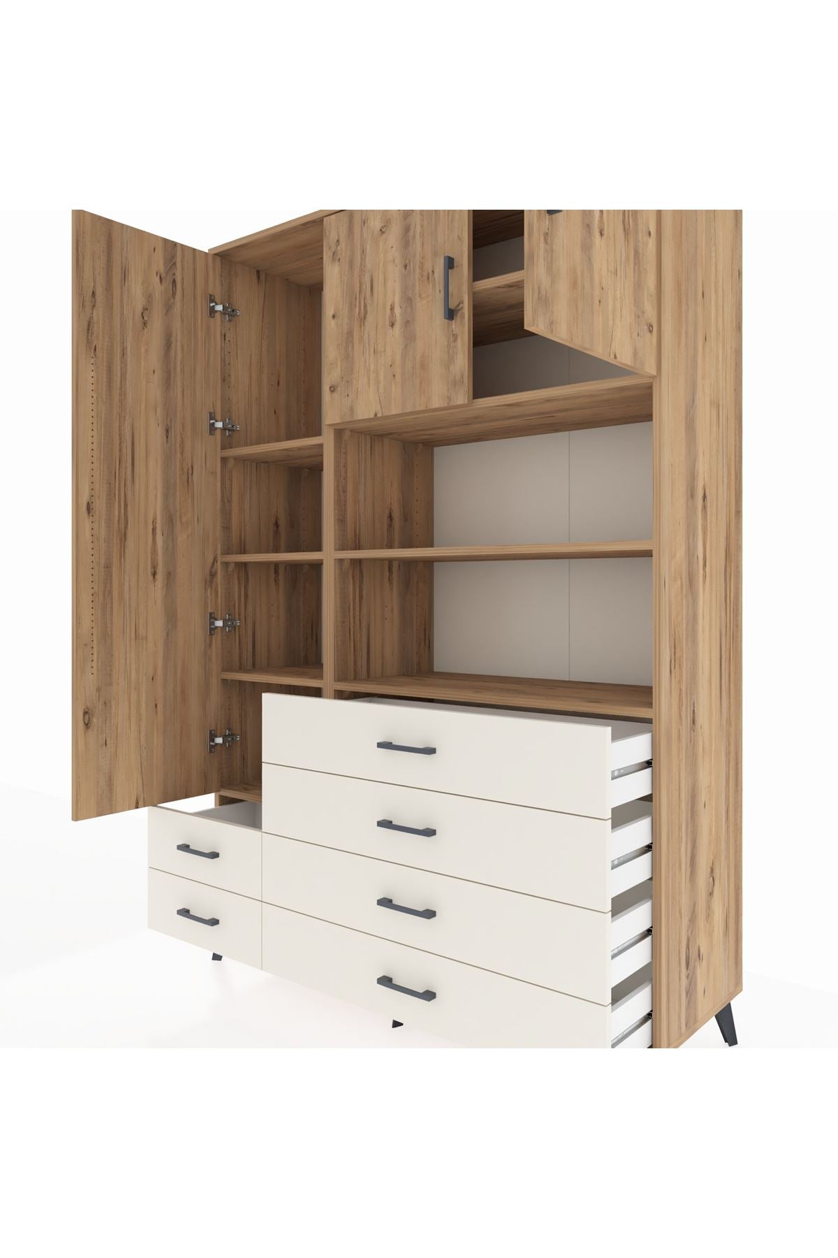 Hyperion Dolap 8 Raflı 6 Çekmeceli 3 Kapaklı 132x44x195 Çam-Çam/Aytaşı
