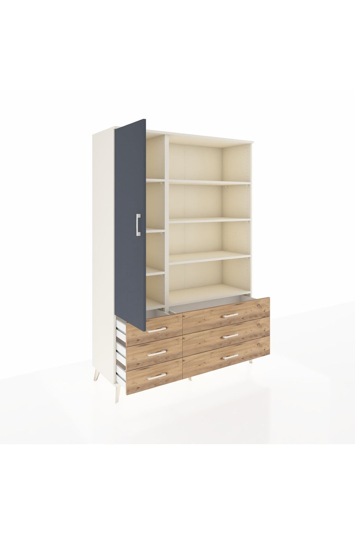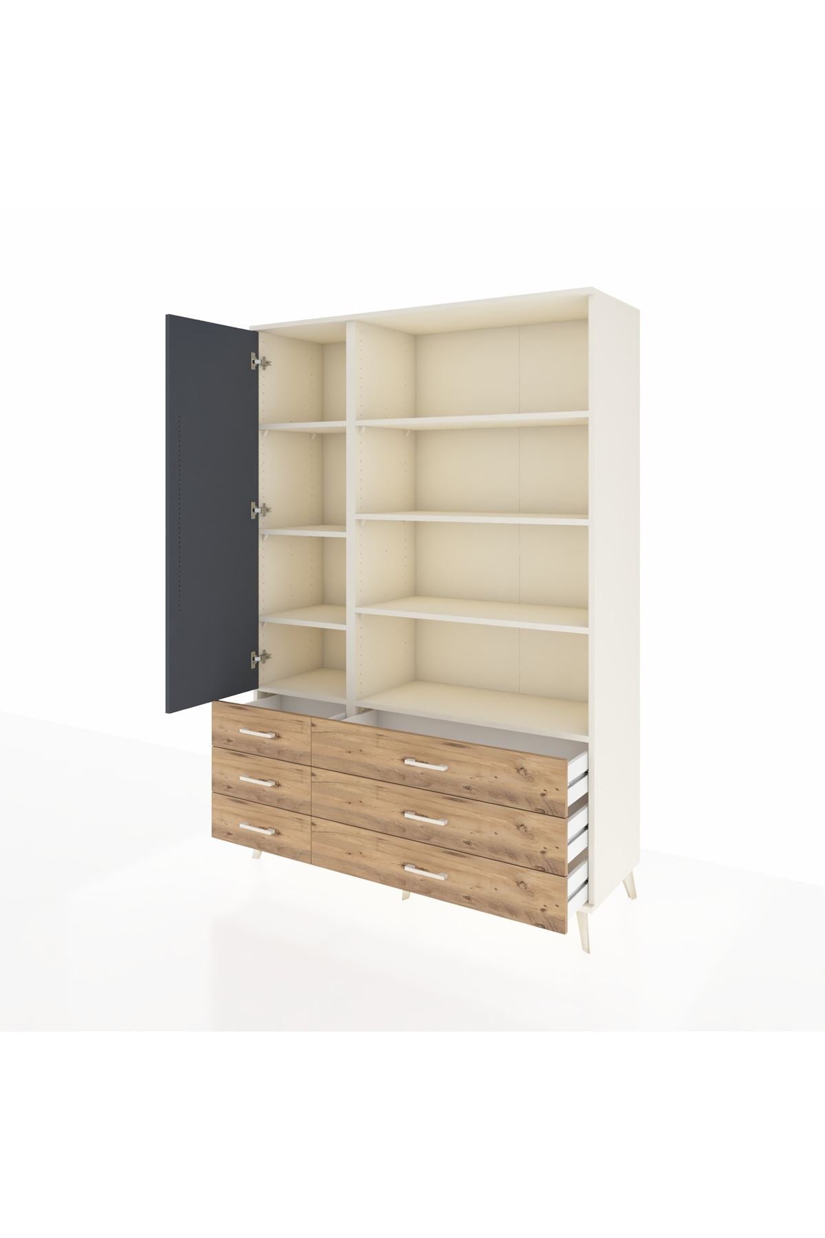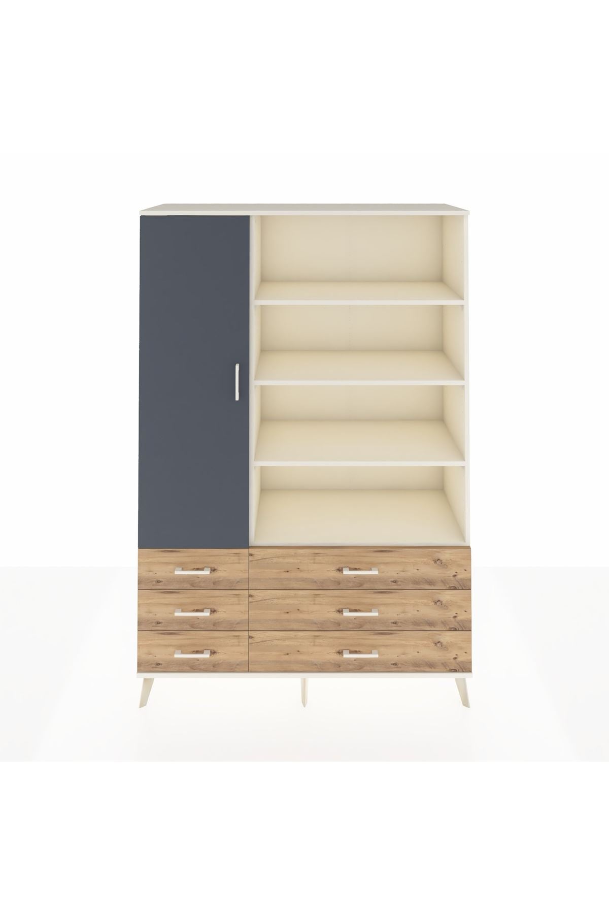 Hyperion Dolap 8 Raflı 6 Çekmeceli Tek Kapaklı 132x44x195 Aytaşı-Antrasit/Çam