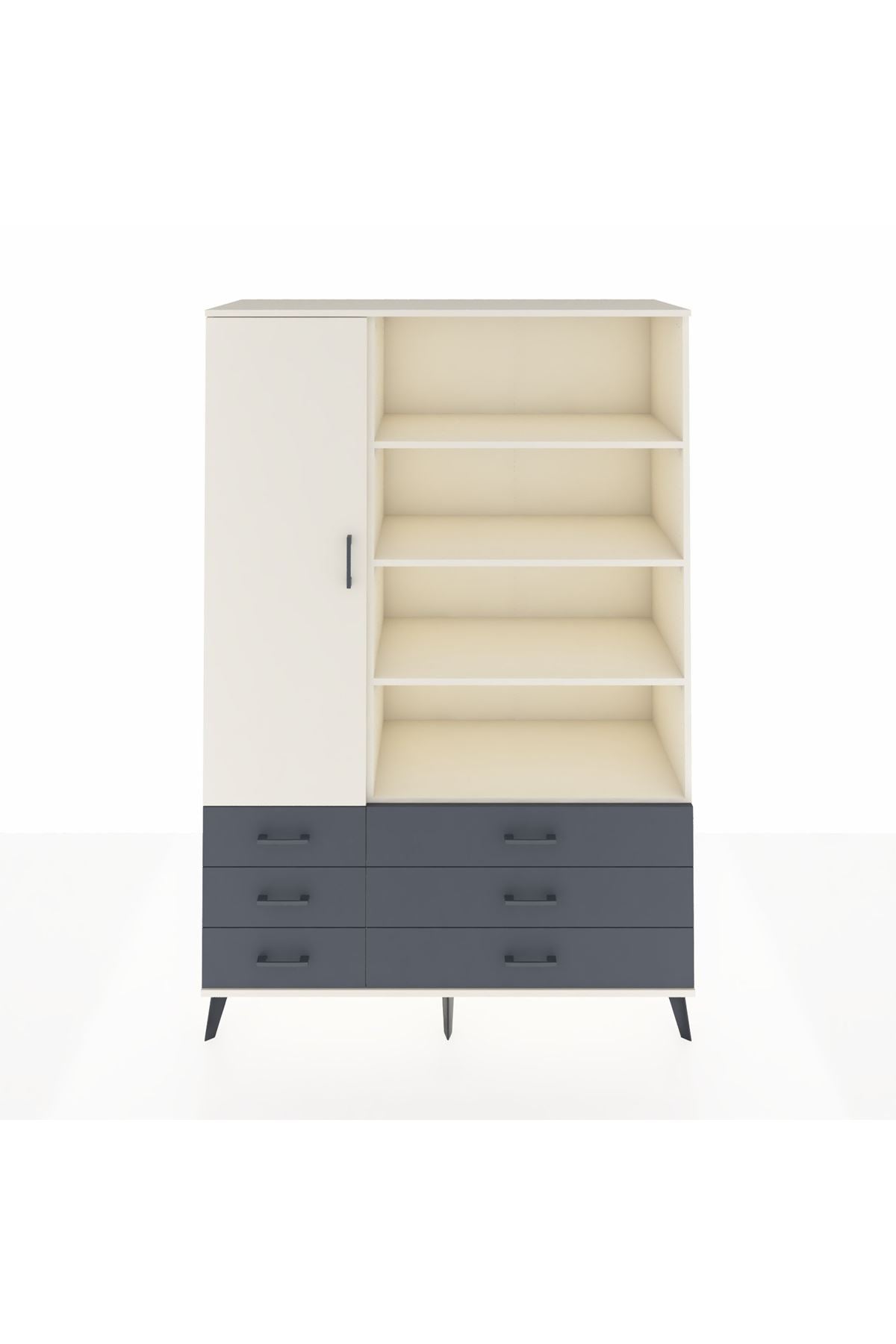 Hyperion Dolap 8 Raflı 6 Çekmeceli Tek Kapaklı 132x44x195 Aytaşı-Aytaşı/Antrasit