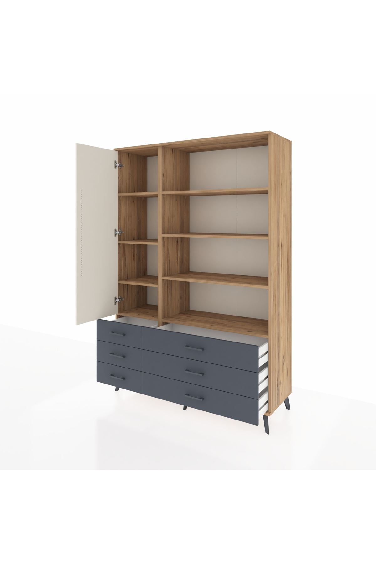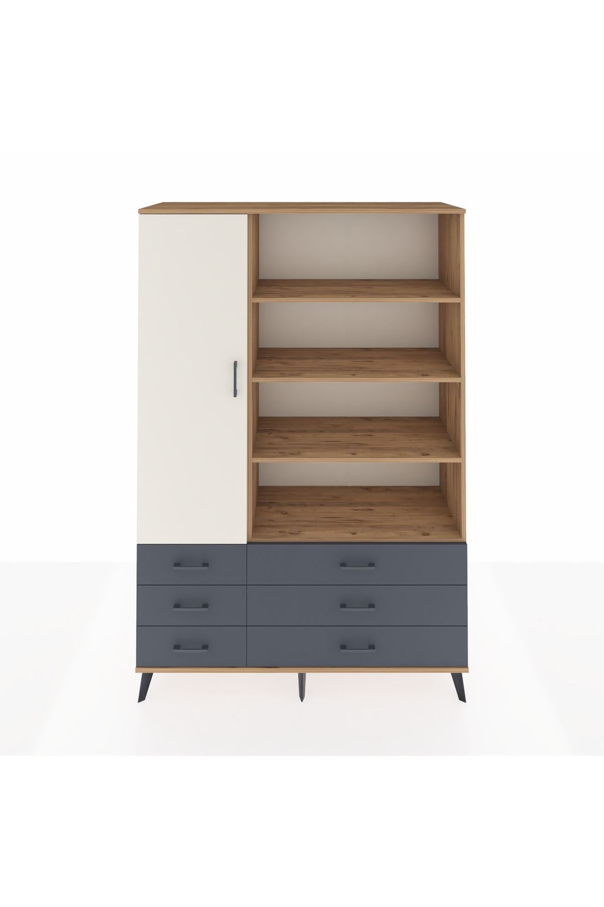 Hyperion Dolap 8 Raflı 6 Çekmeceli Tek Kapaklı 132x44x195 Çam-Aytaşı/Antrasit