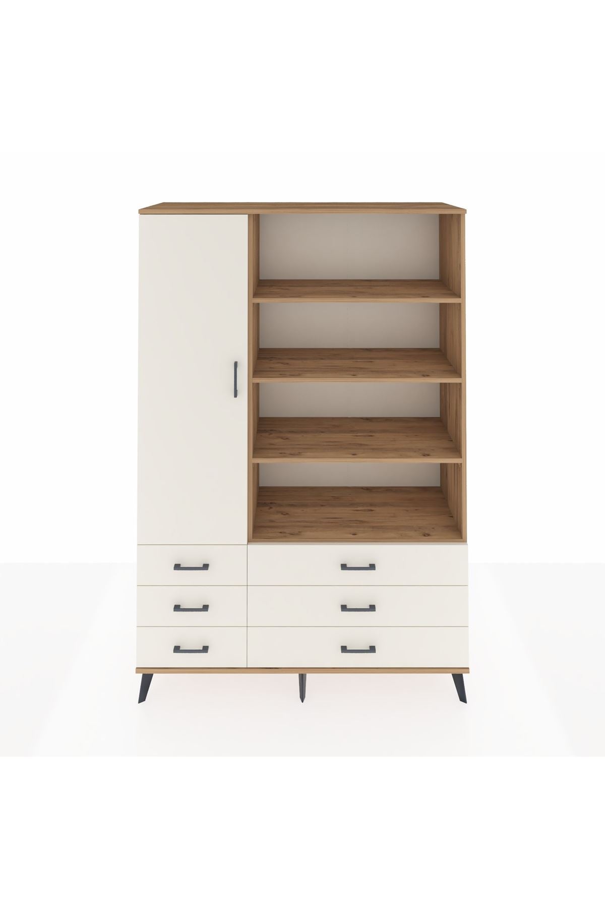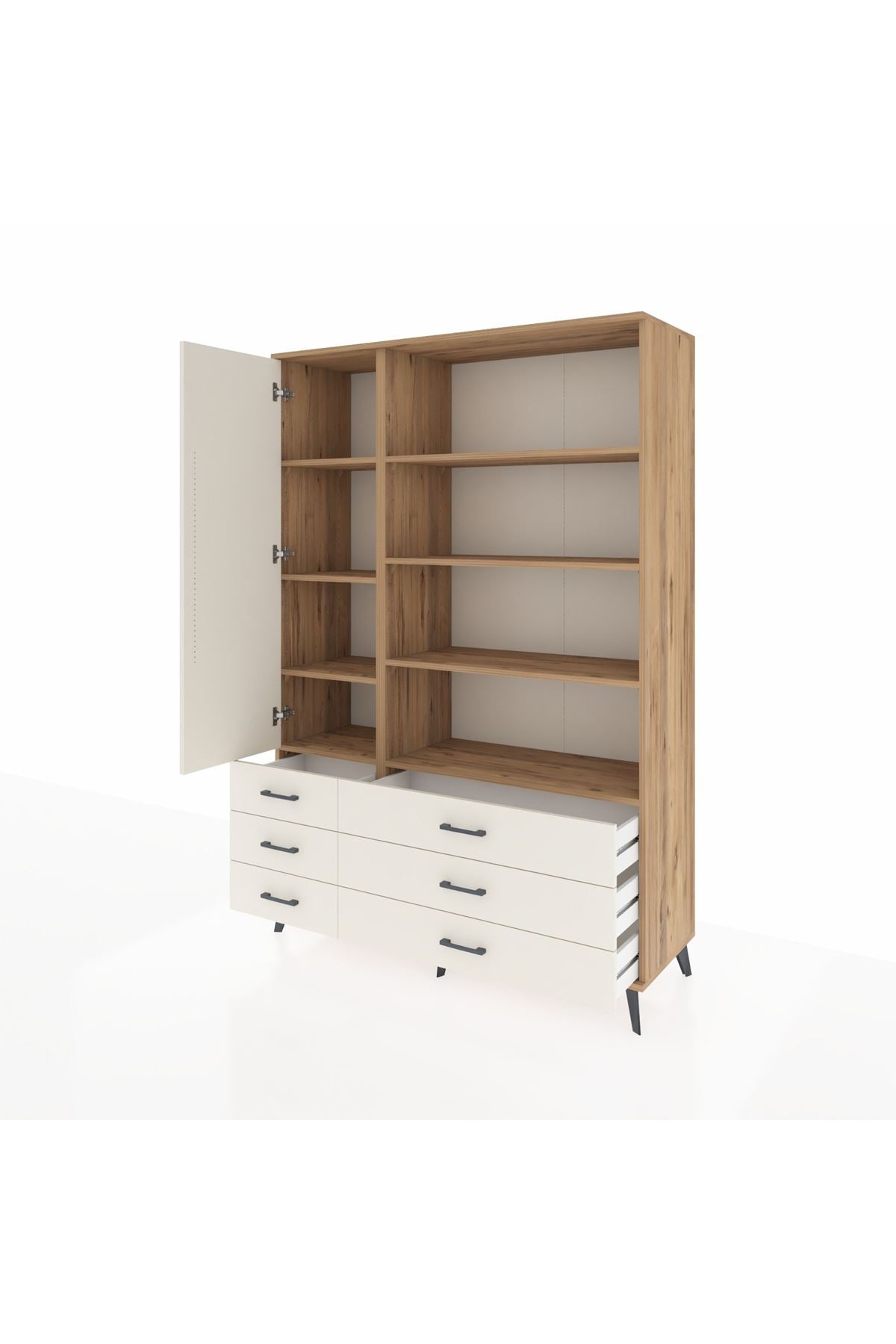 Hyperion Dolap 8 Raflı 6 Çekmeceli Tek Kapaklı 132x44x195 Çam-Aytaşı/Aytaşı