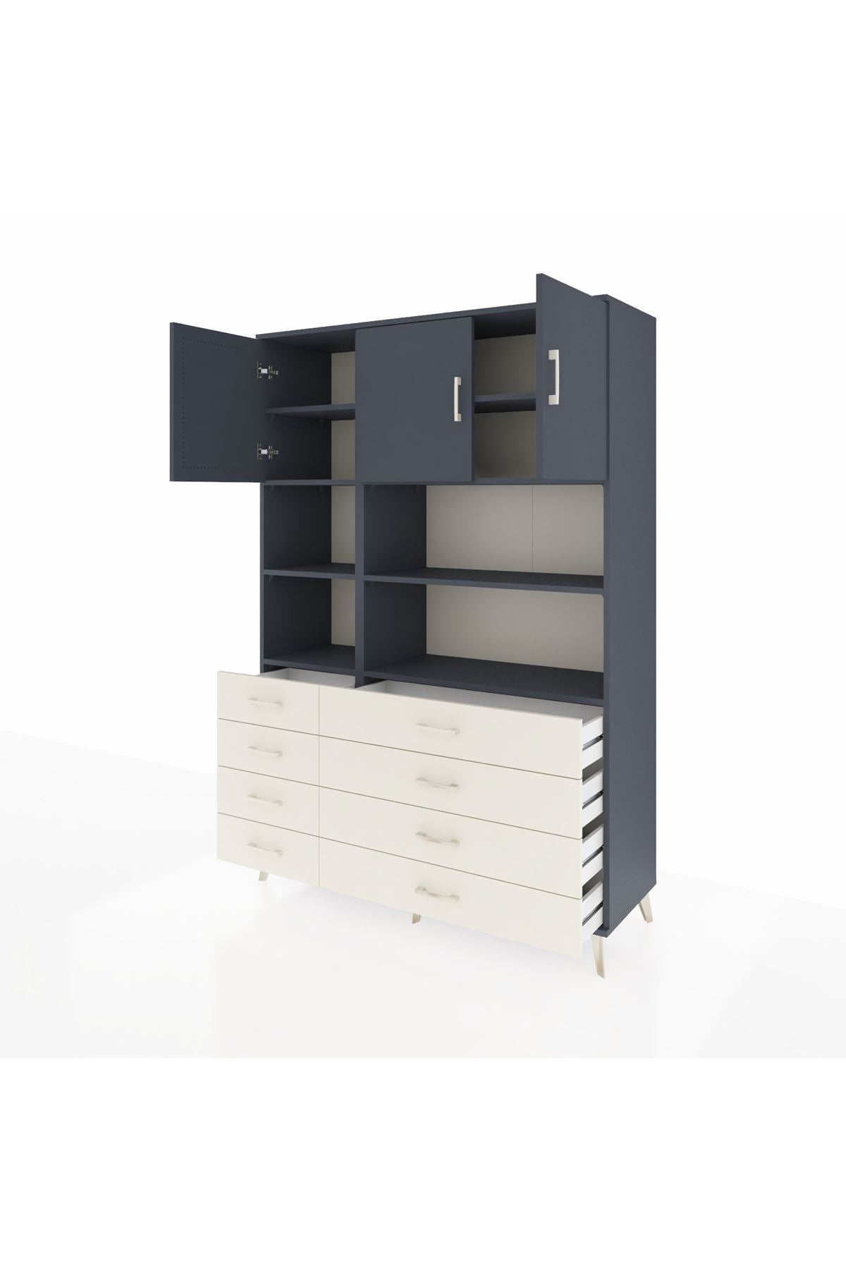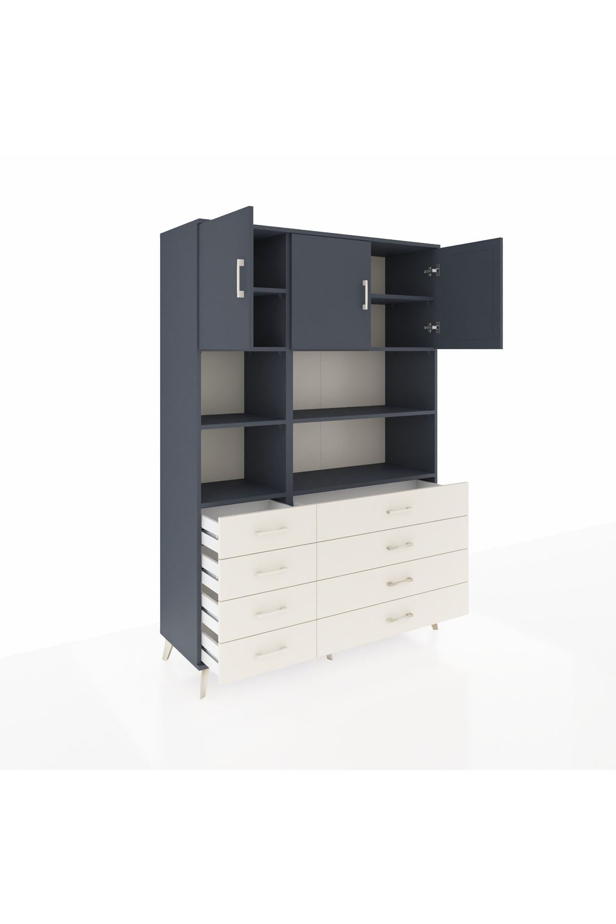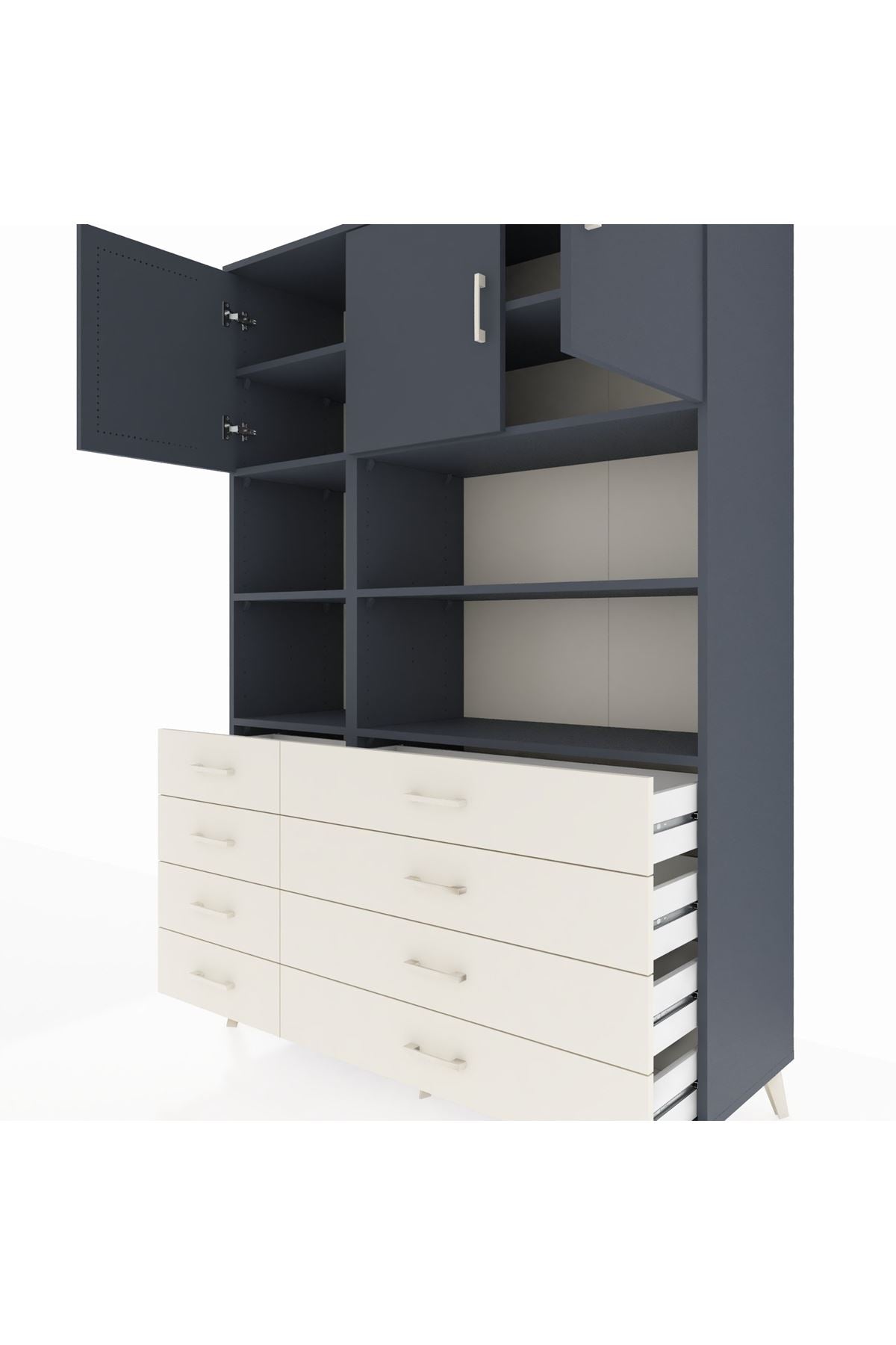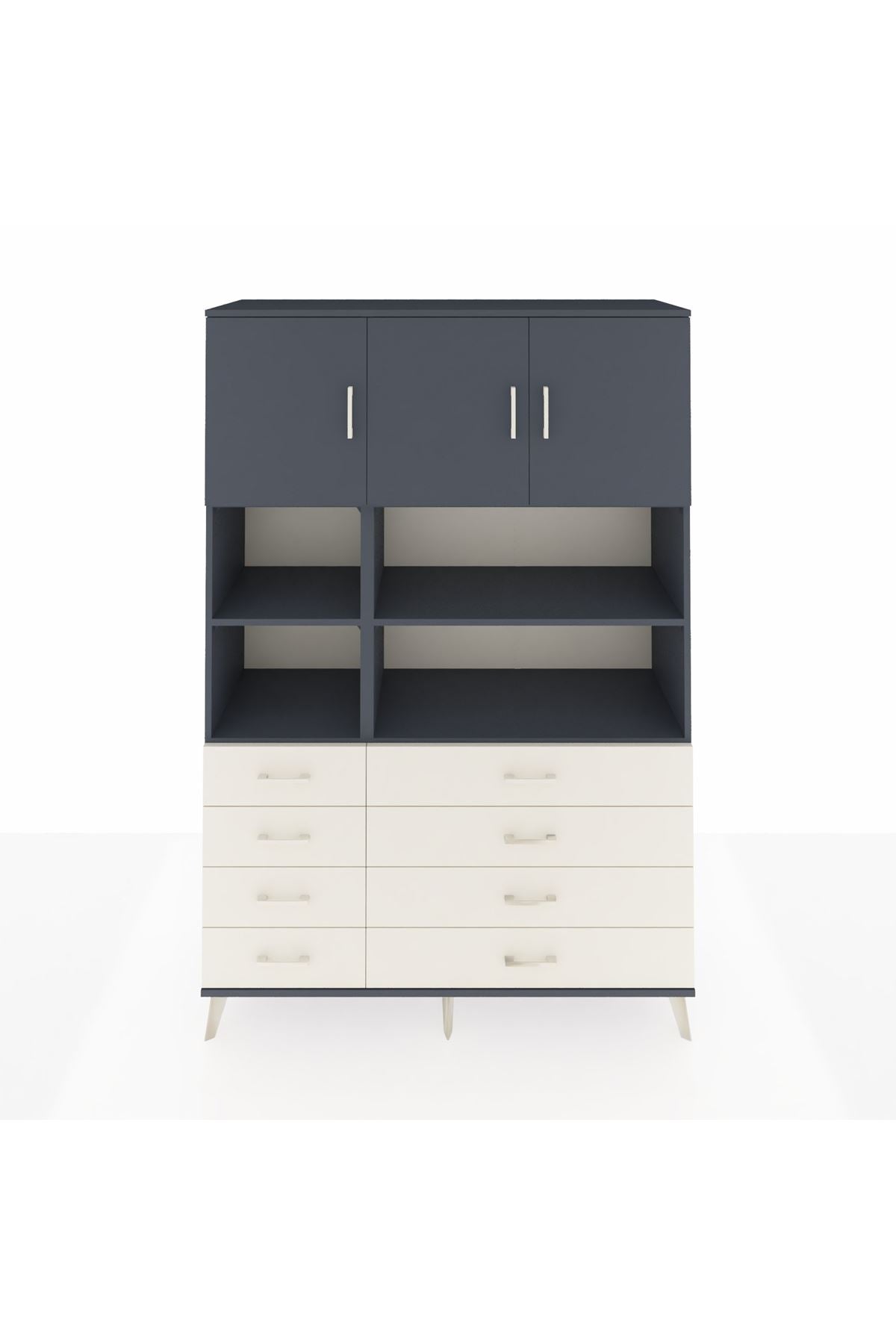 Hyperion Dolap 8 Raflı 8 Çekmeceli 3 Kapaklı 132x44x195 Antrasit-Antrasit/Aytaşı