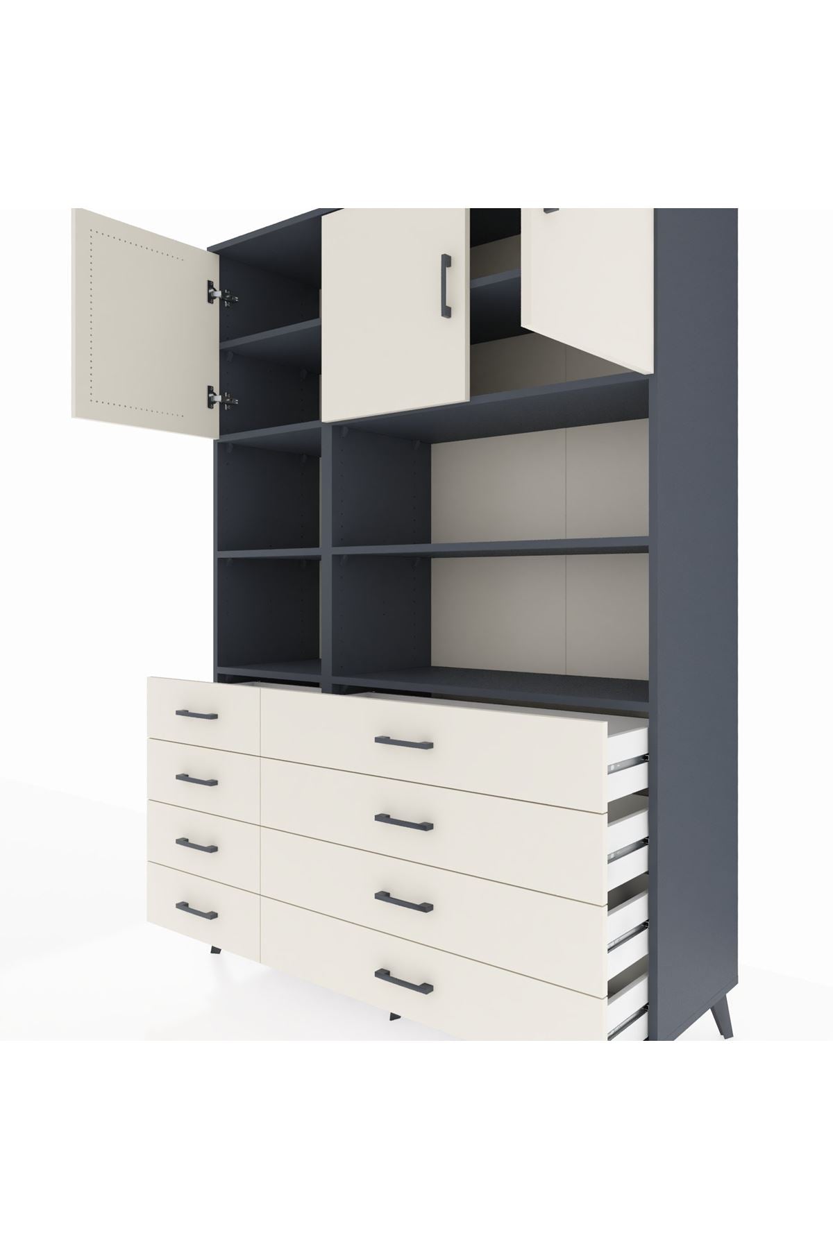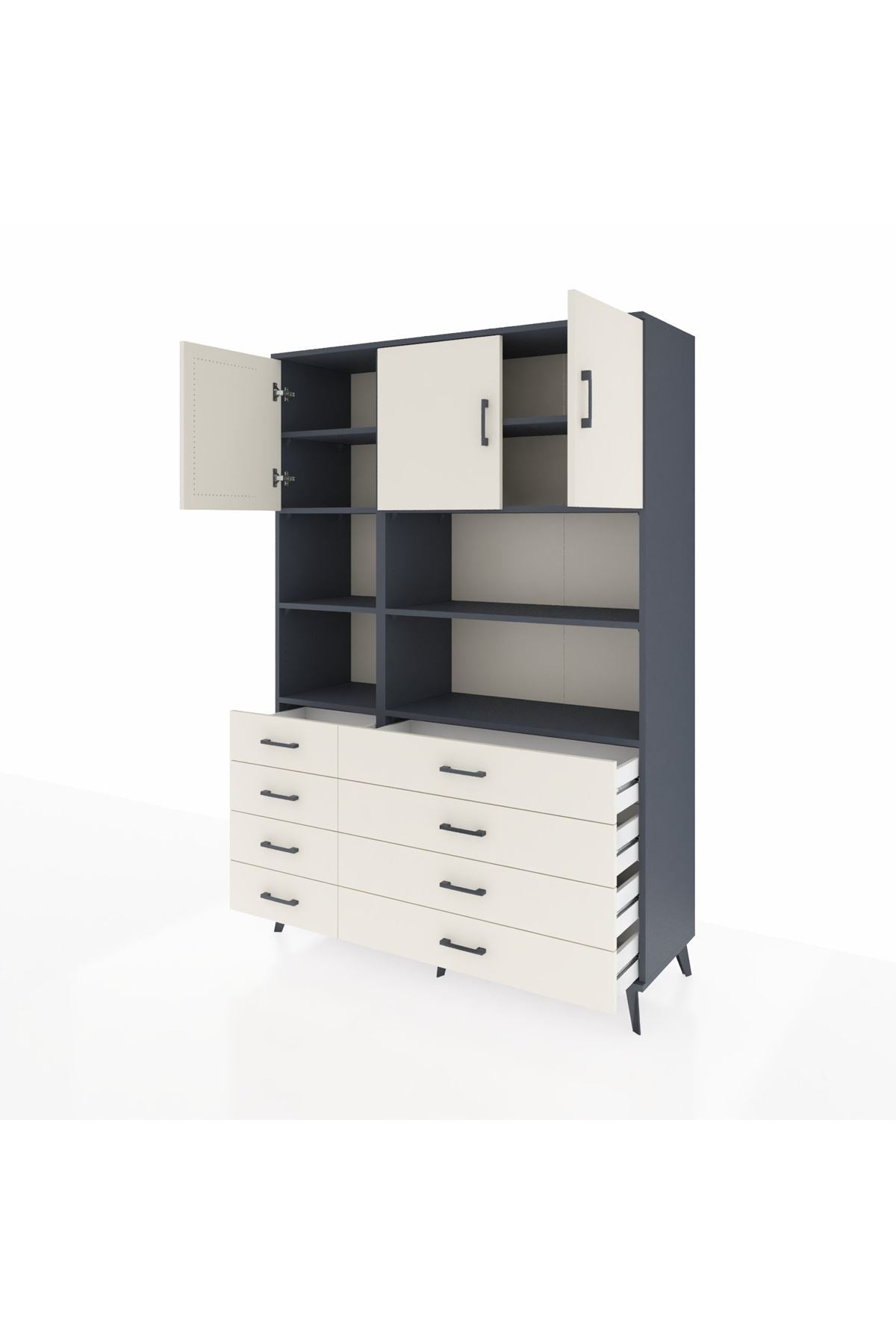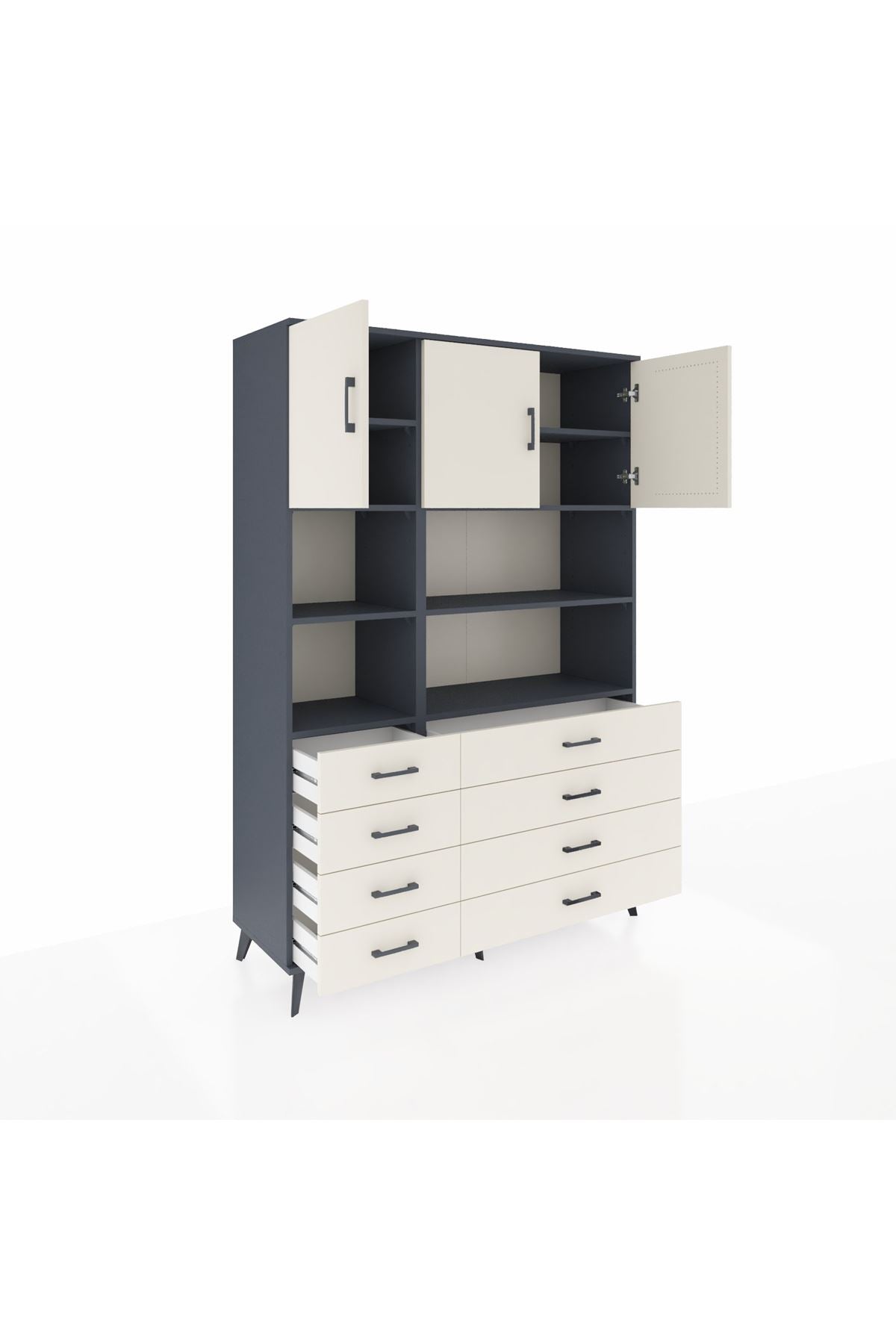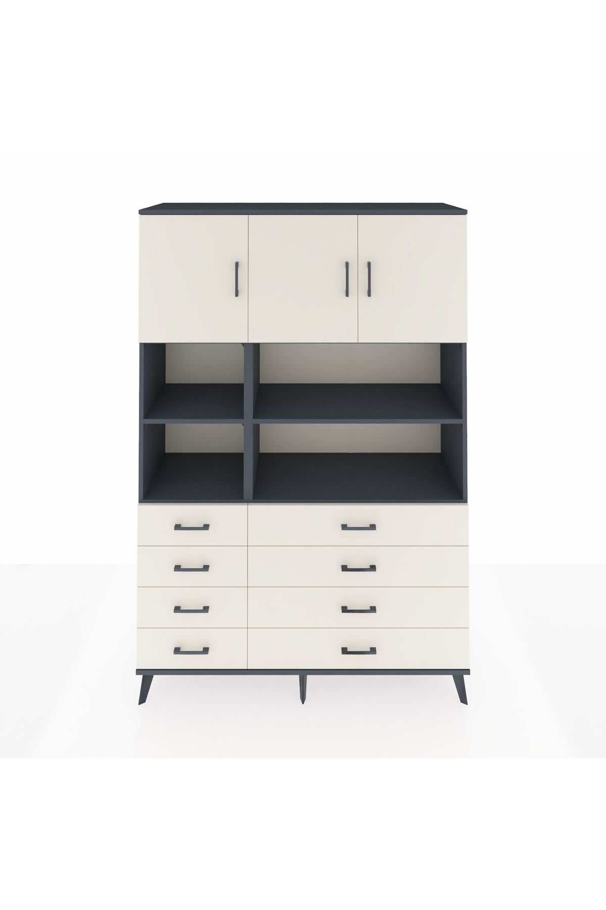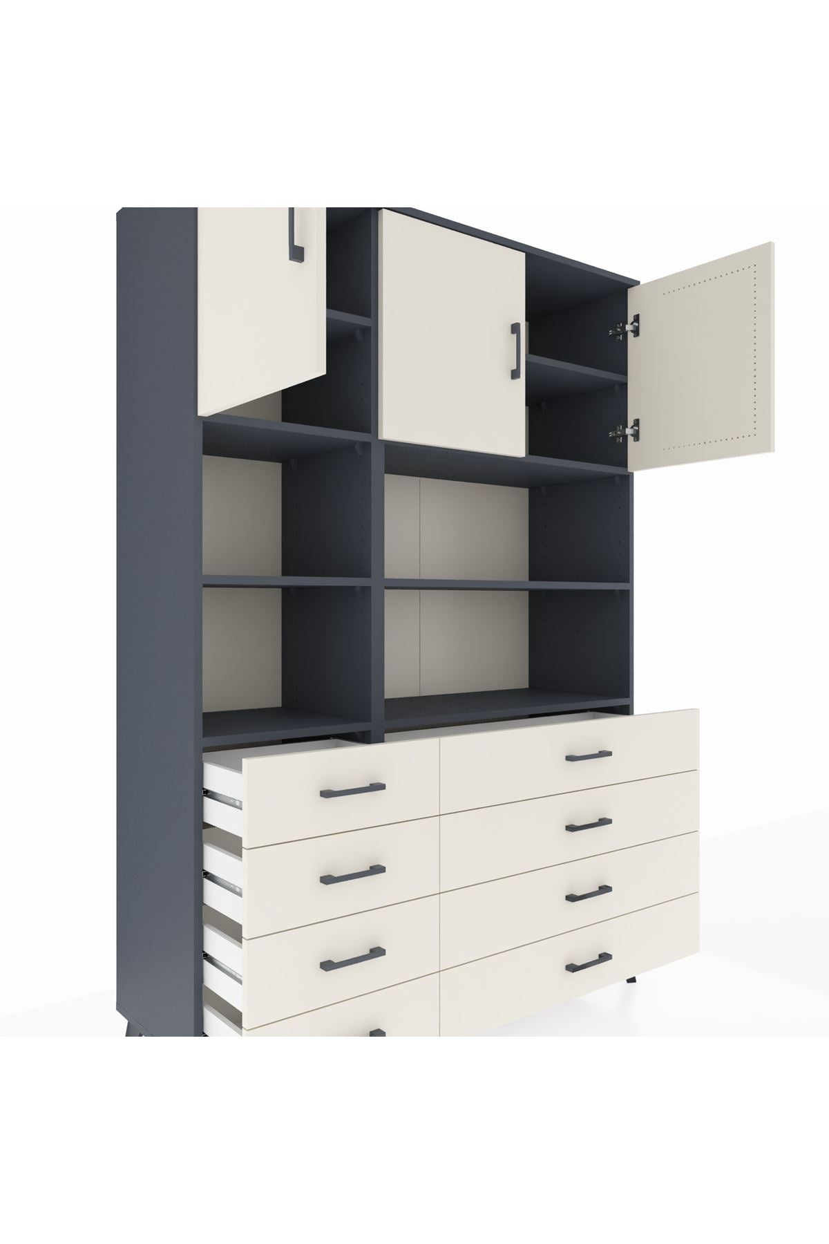 Hyperion Dolap 8 Raflı 8 Çekmeceli 3 Kapaklı 132x44x195 Antrasit-Aytaşı/Aytaşı