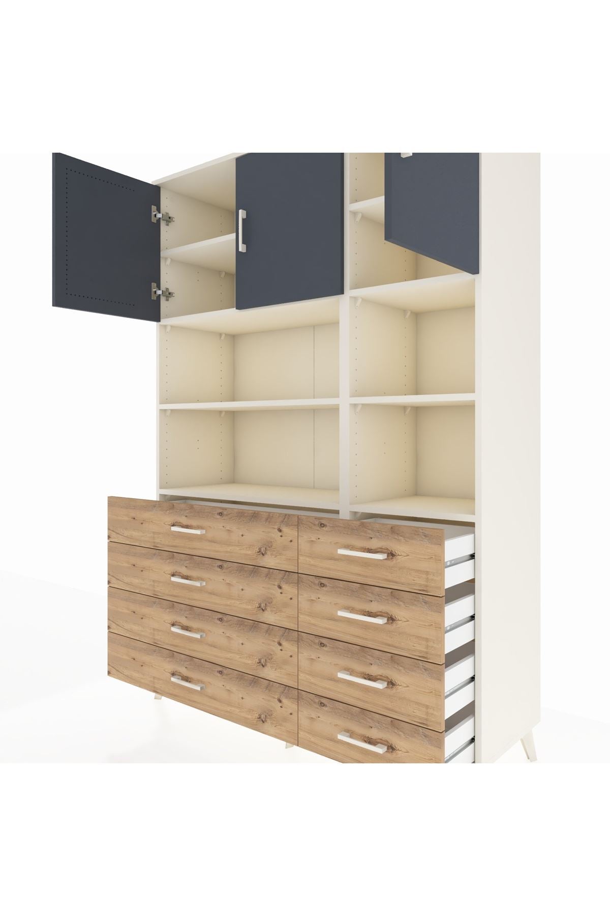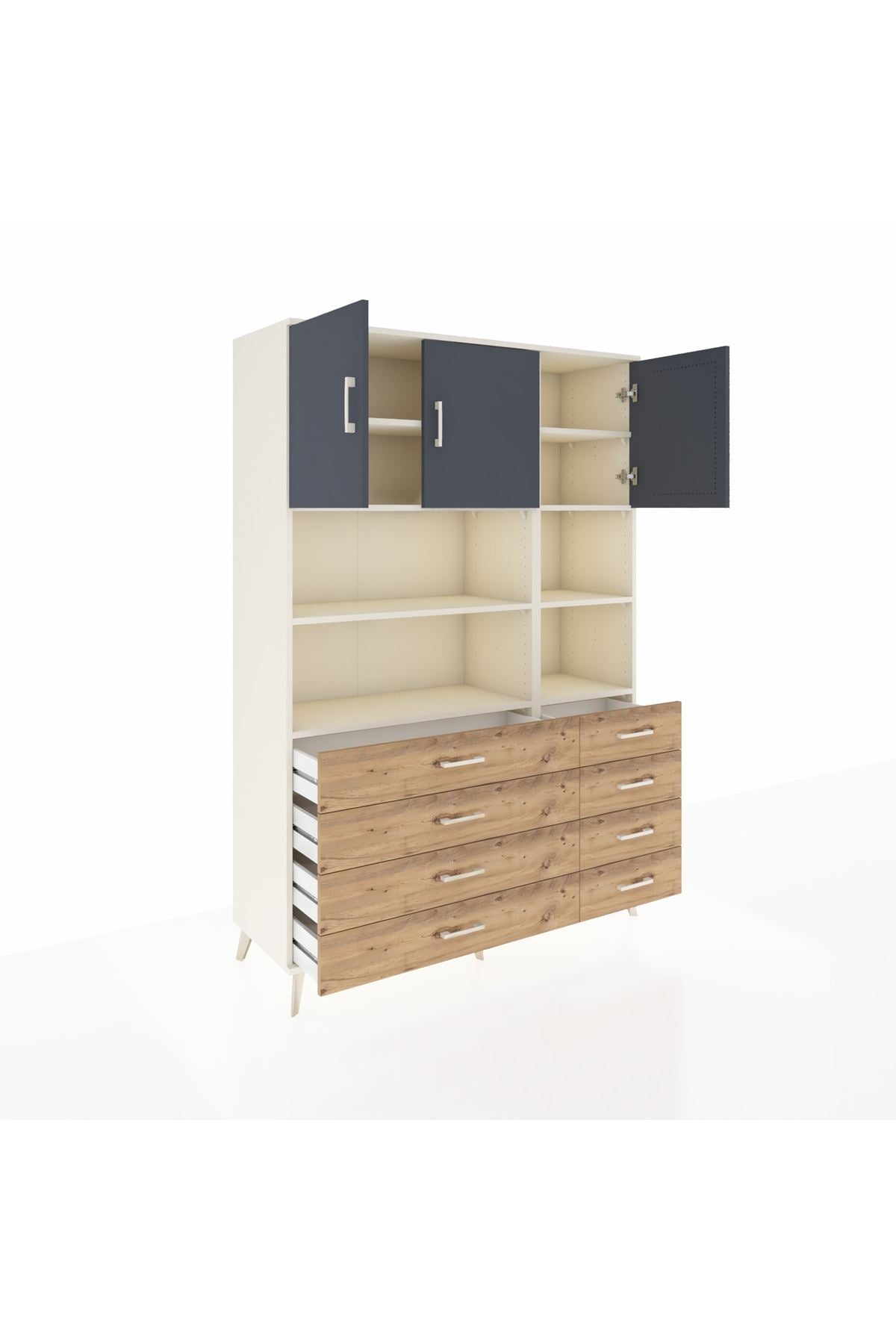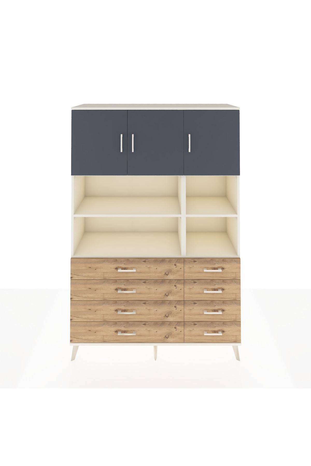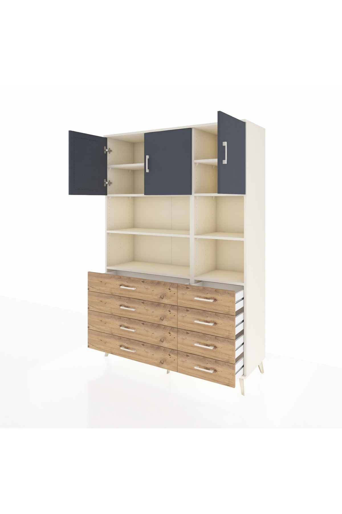 Hyperion Dolap 8 Raflı 8 Çekmeceli 3 Kapaklı 132x44x195 Aytaşı-Antrasit/Çam
