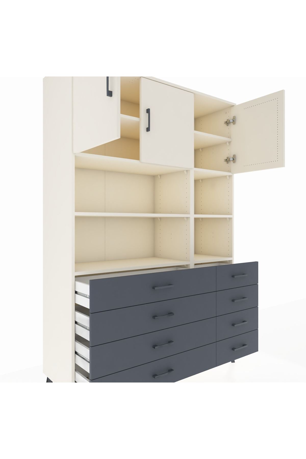 Hyperion Dolap 8 Raflı 8 Çekmeceli 3 Kapaklı 132x44x195 Aytaşı-Aytaşı/Antrasit