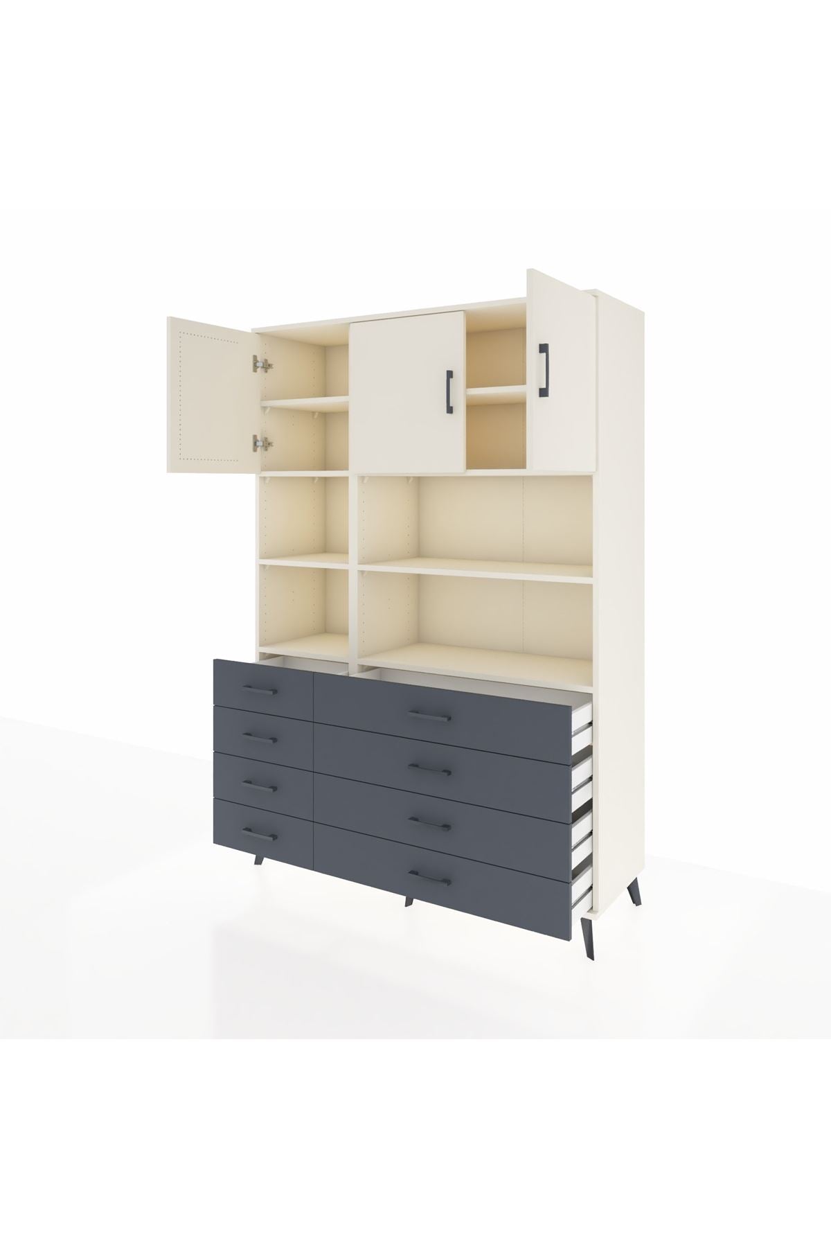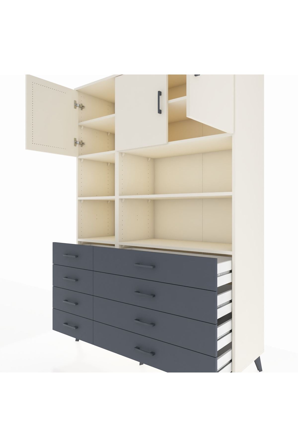 Hyperion Dolap 8 Raflı 8 Çekmeceli 3 Kapaklı 132x44x195 Aytaşı-Aytaşı/Antrasit