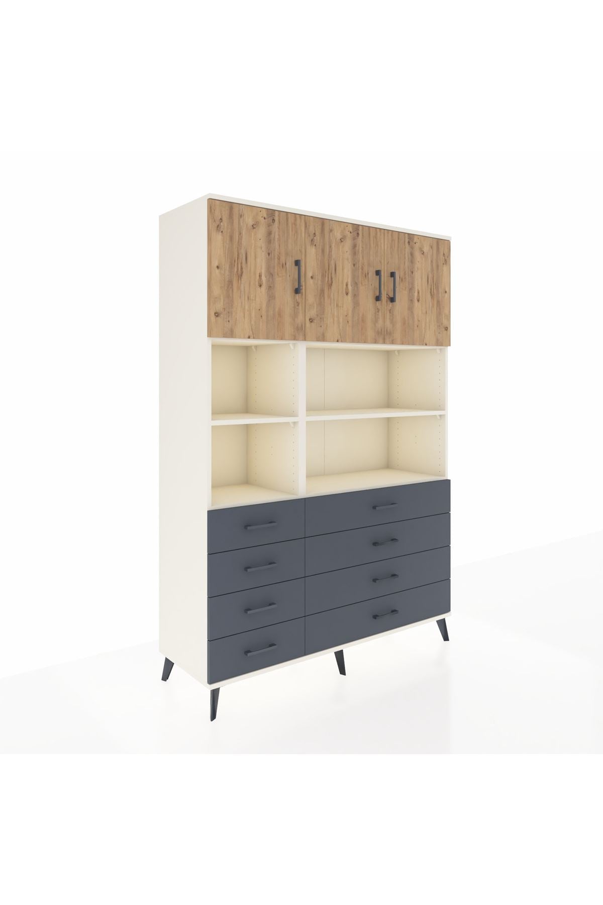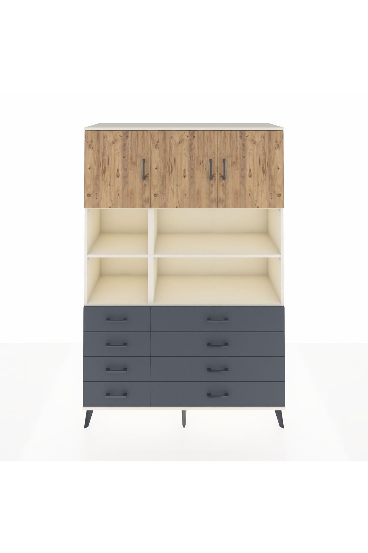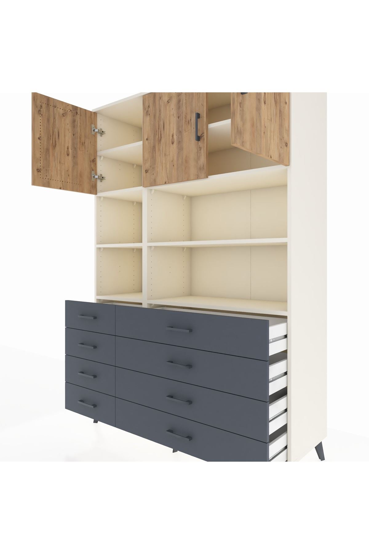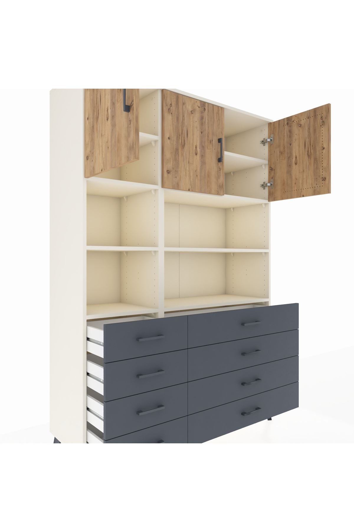 Hyperion Dolap 8 Raflı 8 Çekmeceli 3 Kapaklı 132x44x195 Aytaşı-Çam/Antrasit