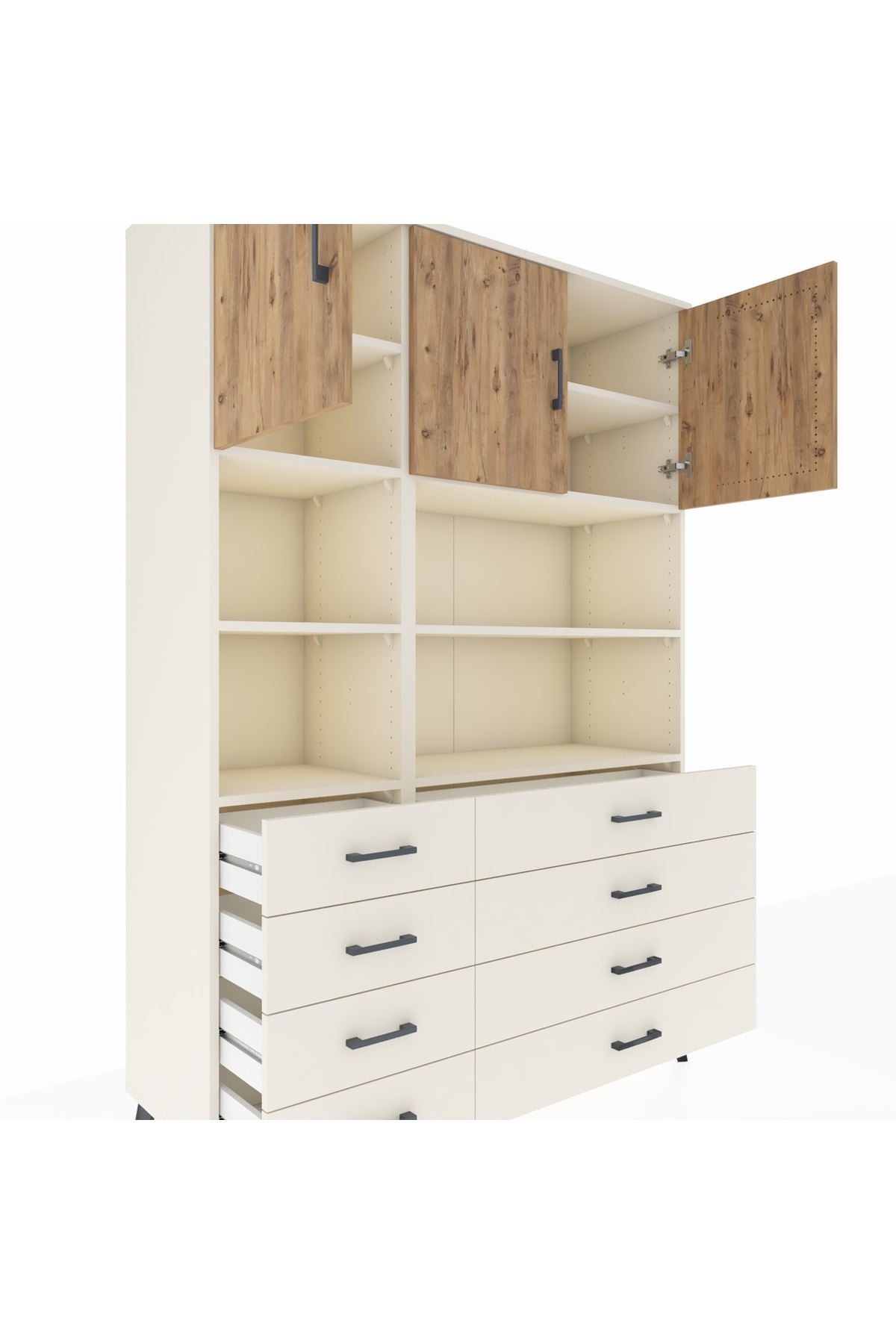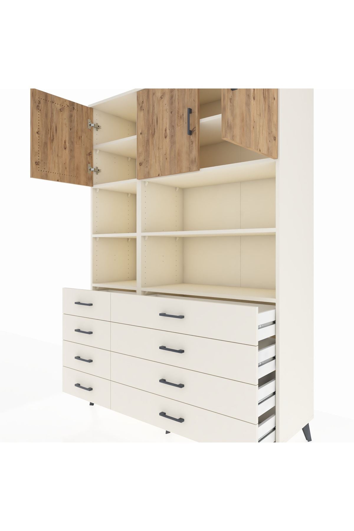 Hyperion Dolap 8 Raflı 8 Çekmeceli 3 Kapaklı 132x44x195 Aytaşı-Çam/Aytaşı