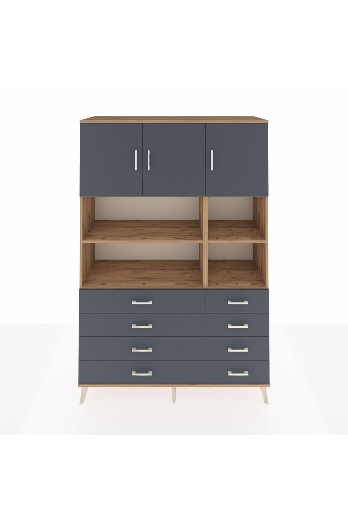Hyperion Dolap 8 Raflı 8 Çekmeceli 3 Kapaklı 132x44x195 Çam-Antrasit/Antrasit