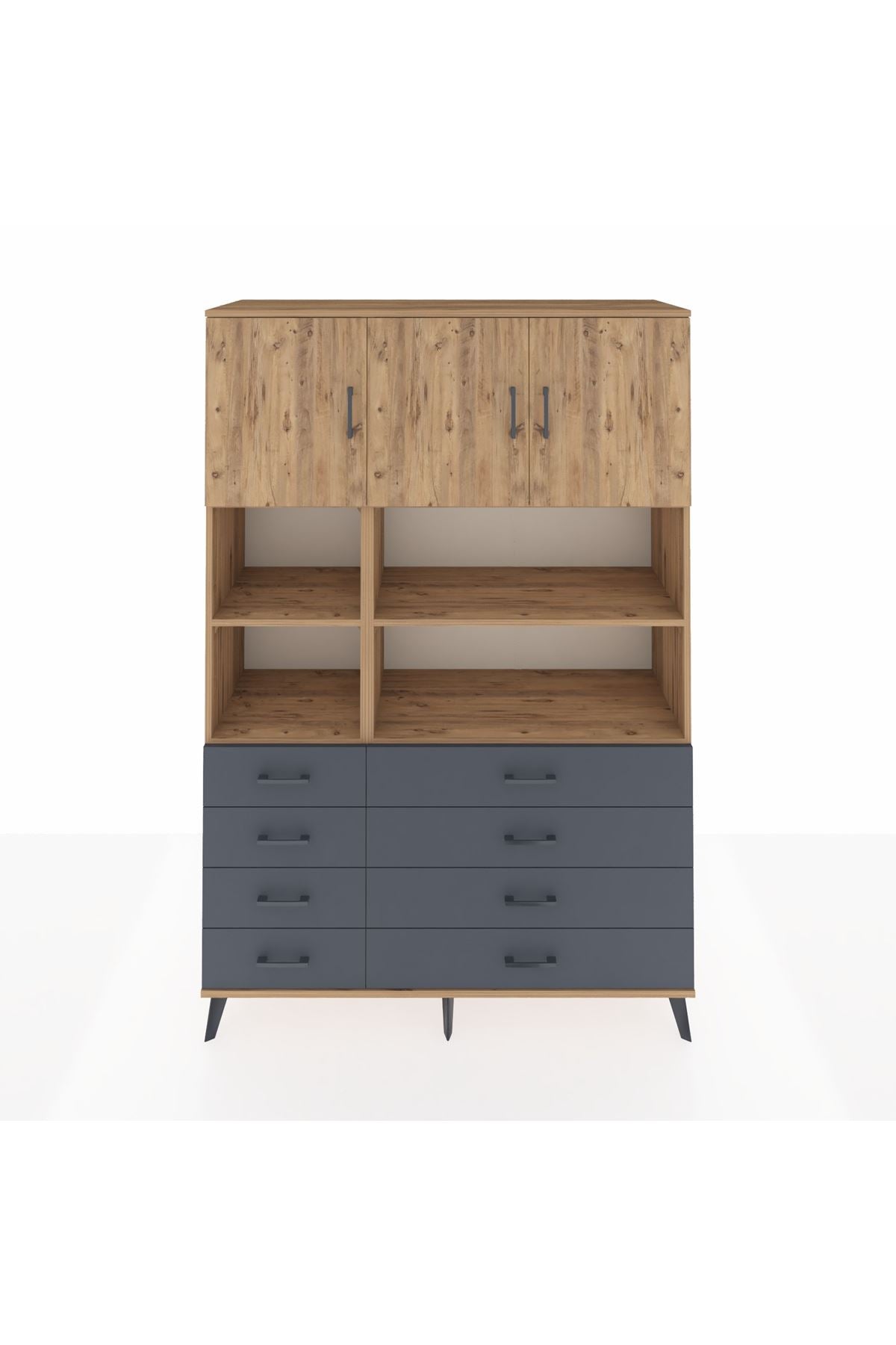 Hyperion Dolap 8 Raflı 8 Çekmeceli 3 Kapaklı 132x44x195 Çam-Çam/Antrasit