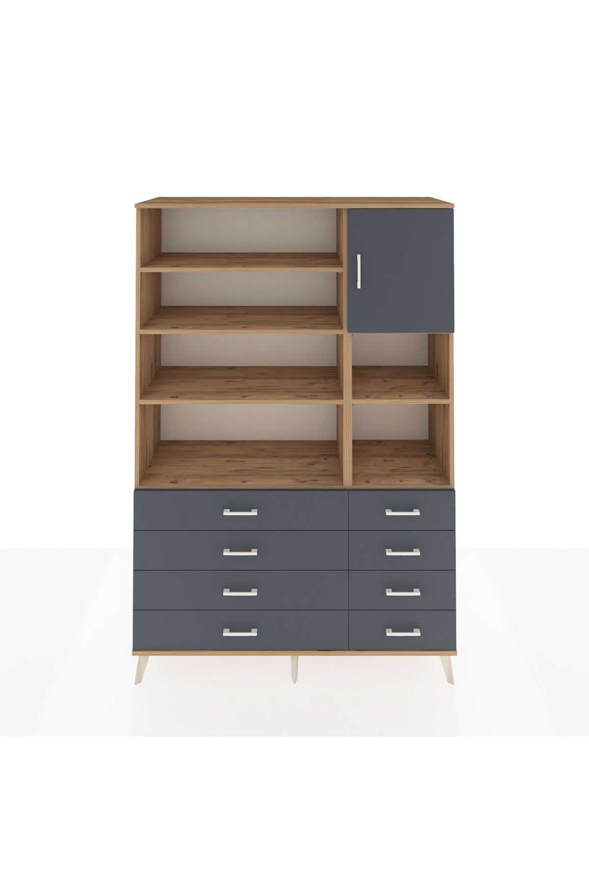 Hyperion Dolap 8 Raflı 8 Çekmeceli Tek Kapaklı 132x44x195 Çam-Antrasit/Antrasit