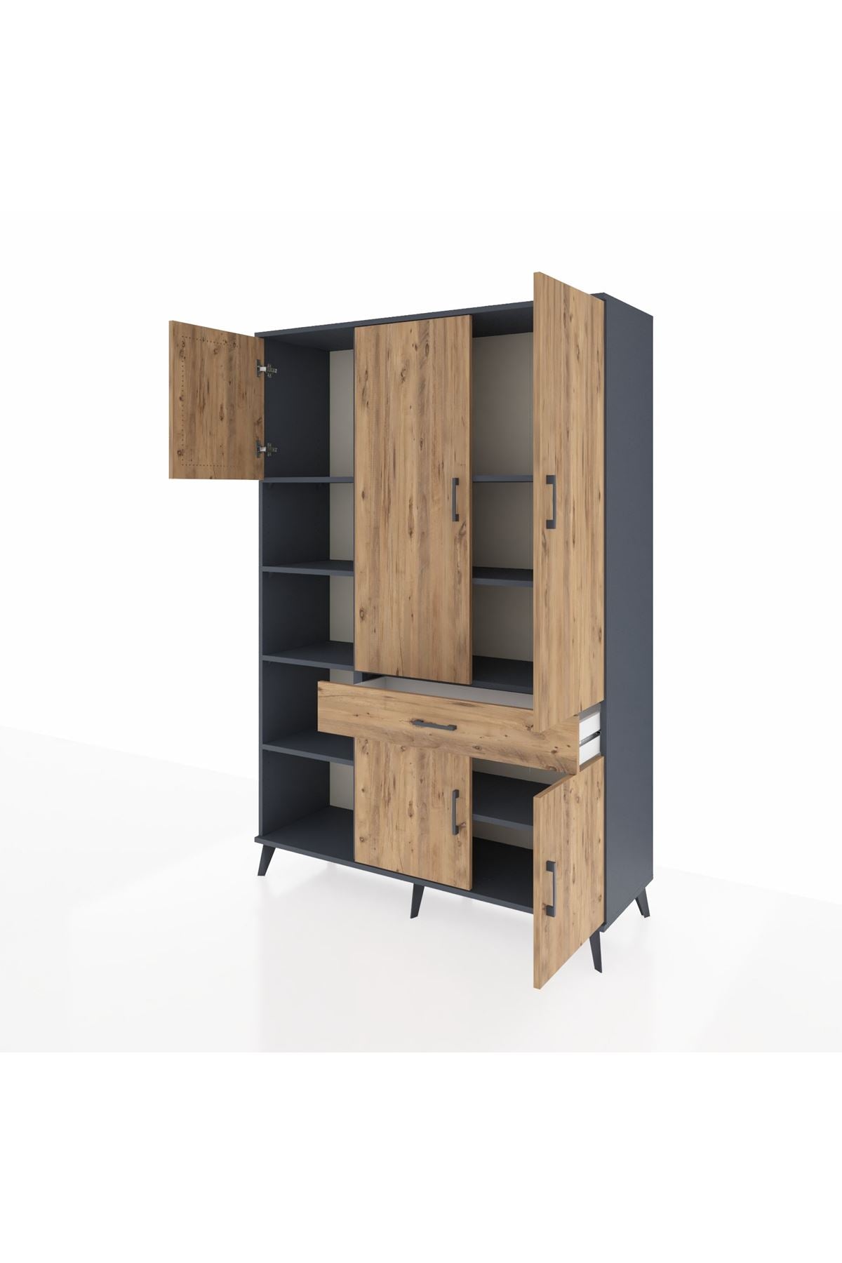 Hyperion Dolap 8 Raflı Tek Çekmeceli 5 Kapaklı 132x44x195 Antrasit-Çam/Çam