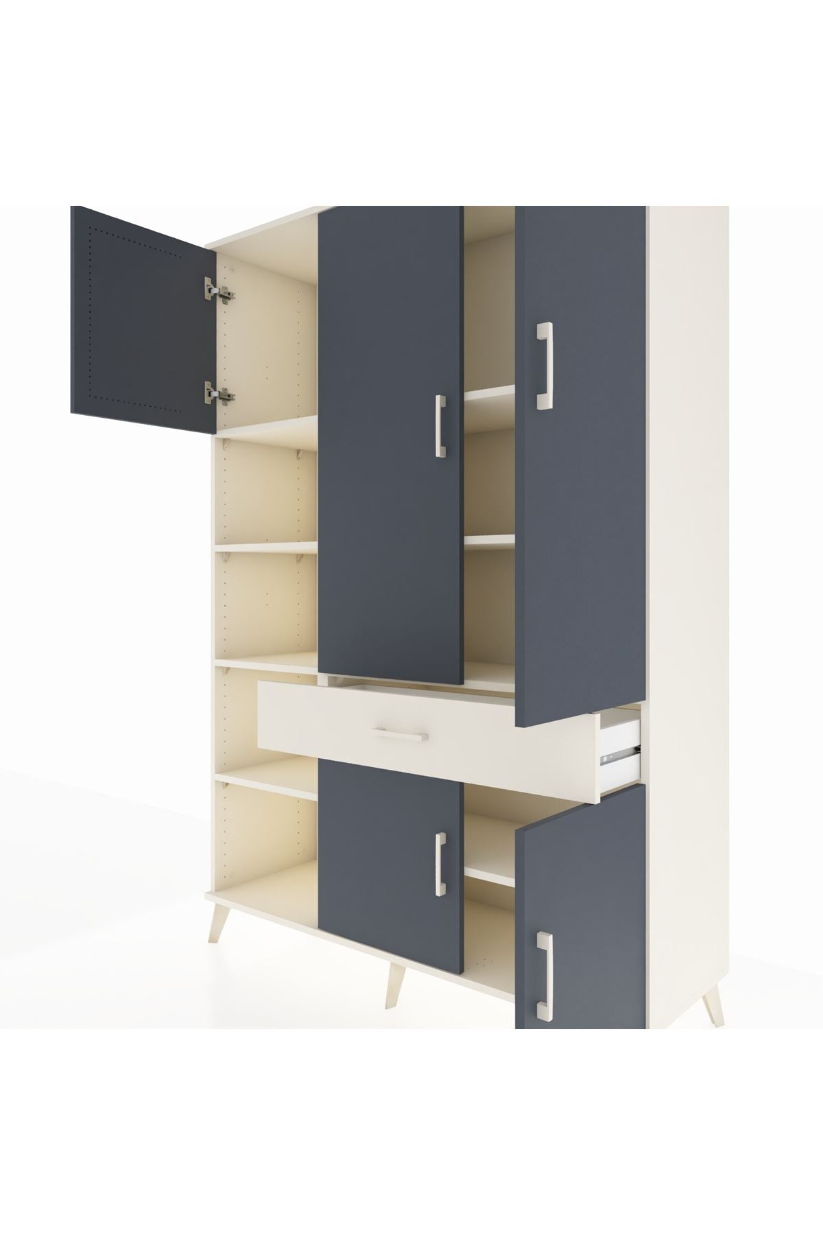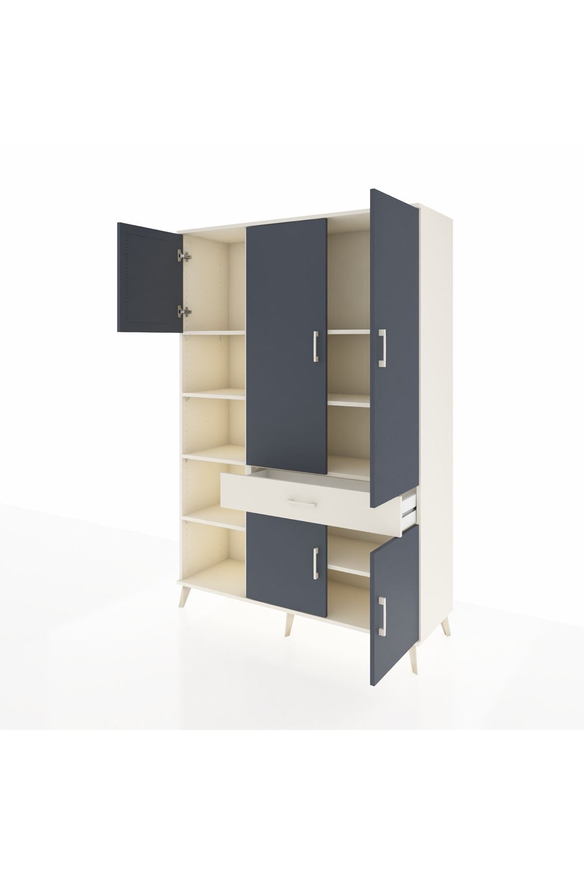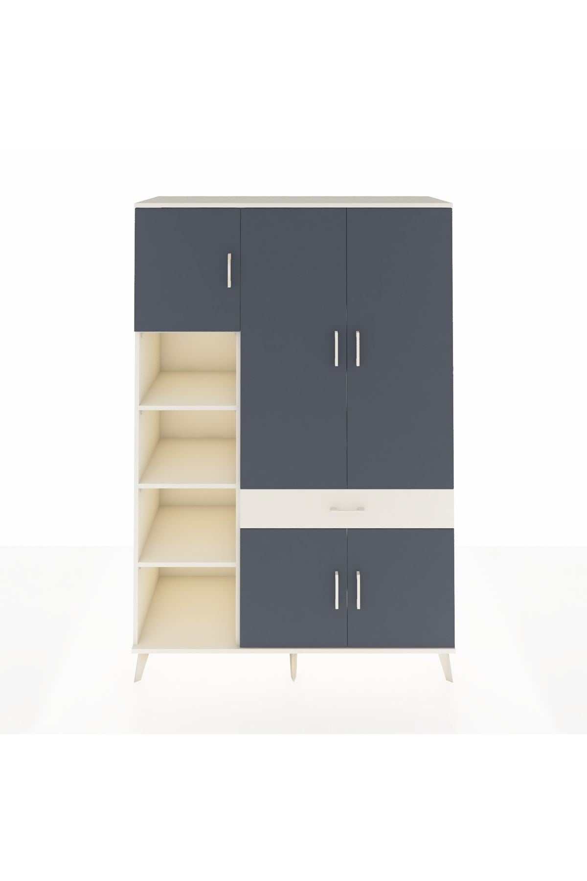 Hyperion Dolap 8 Raflı Tek Çekmeceli 5 Kapaklı 132x44x195 Aytaşı-Antrasit/Aytaşı