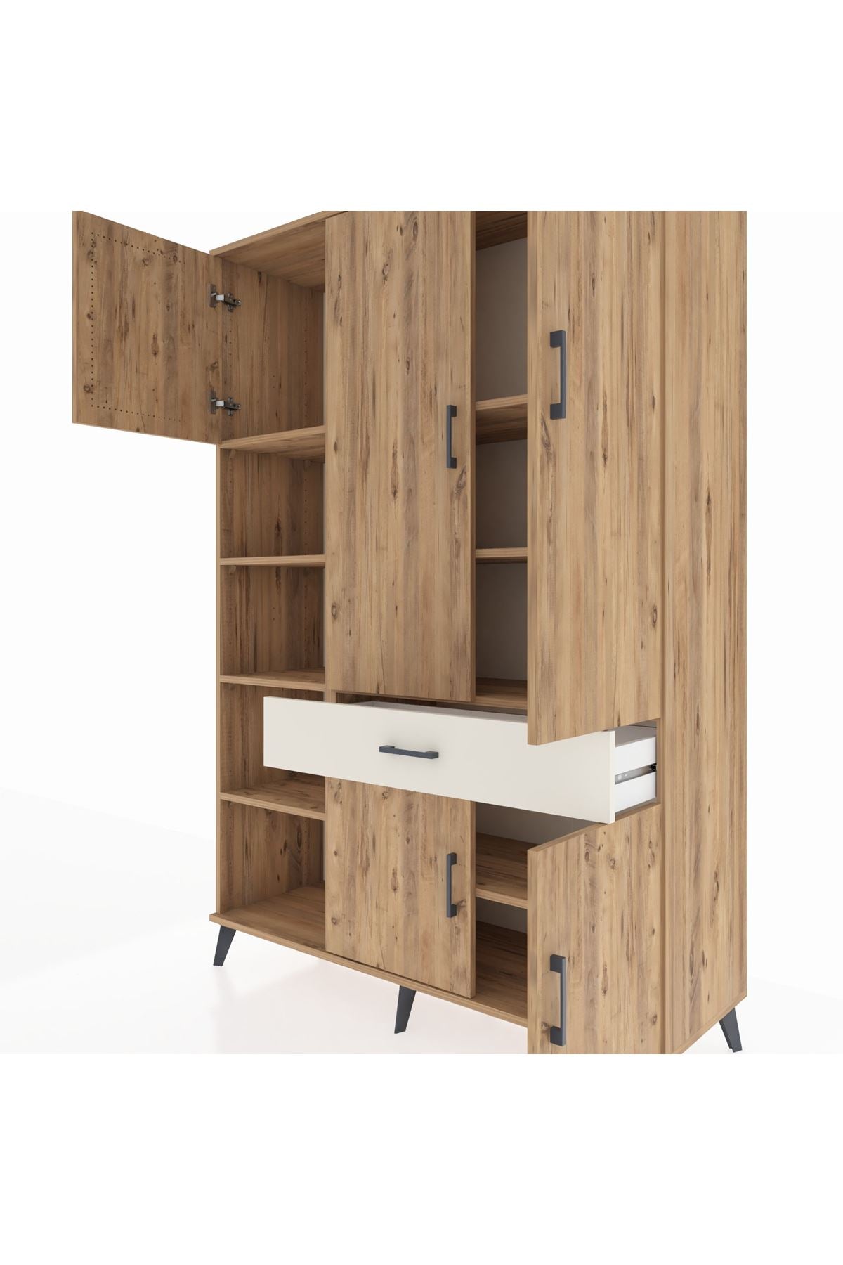 Hyperion Dolap 8 Raflı Tek Çekmeceli 5 Kapaklı 132x44x195 Çam-Çam/Aytaşı