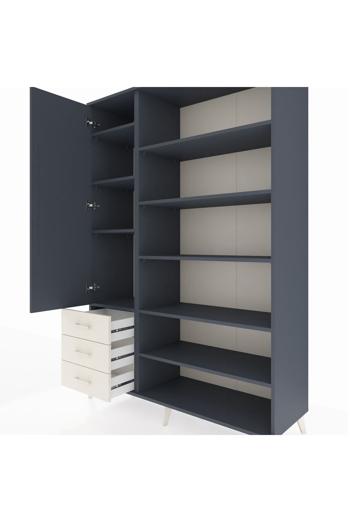 Hyperion Dolap 9 Raflı 3 Çekmeceli 3 Kapaklı 132x44x195 Antrasit-Antrasit/Aytaşı – Düzen ve Dayanıklılığın Buluşması