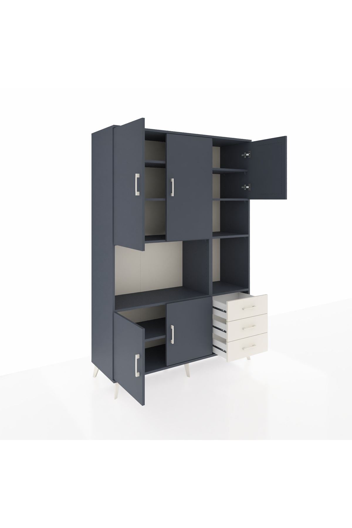 Hyperion Dolap 9 Raflı 3 Çekmeceli 5 Kapaklı 132x44x195 Antrasit-Antrasit/Aytaşı