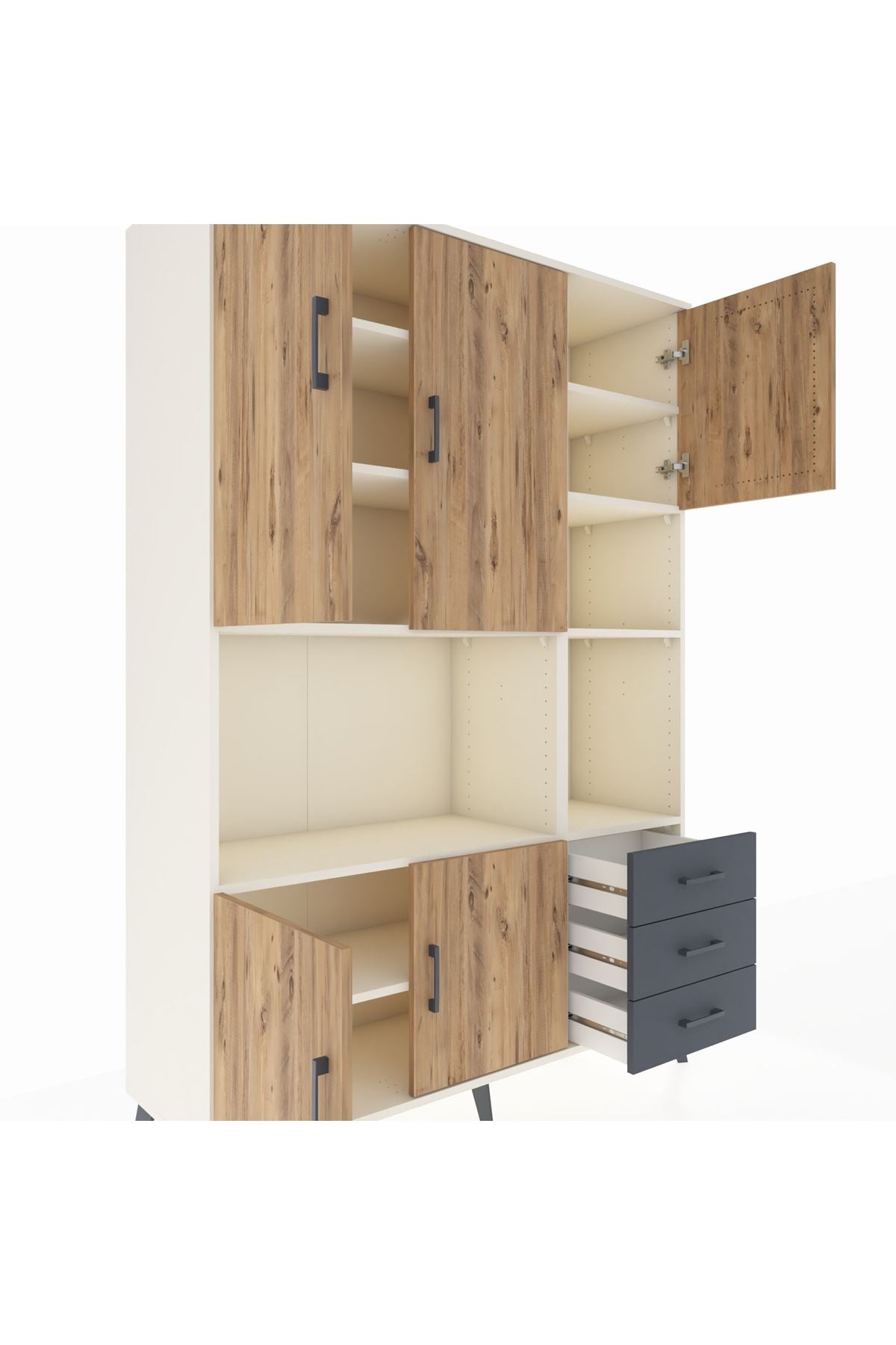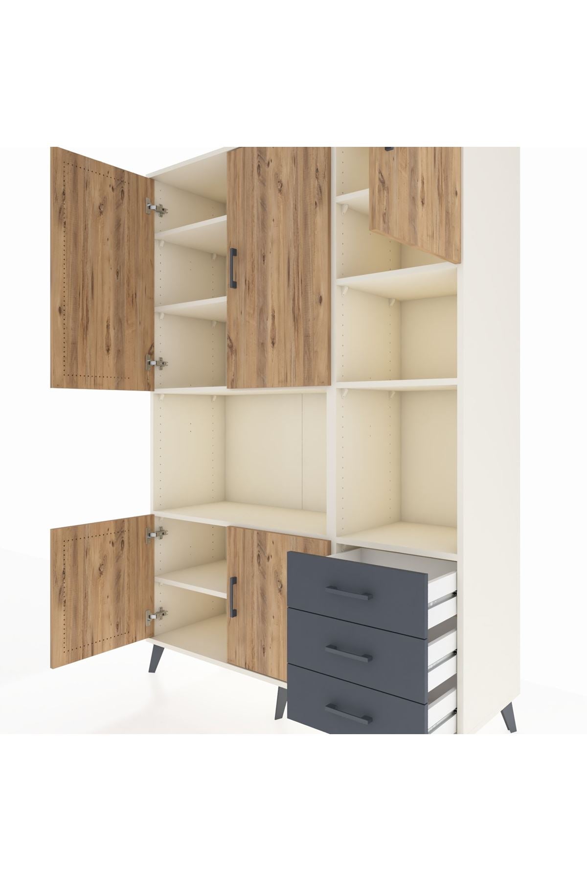 Hyperion Dolap 9 Raflı 3 Çekmeceli 5 Kapaklı 132x44x195 Aytaşı-Çam/Antrasit