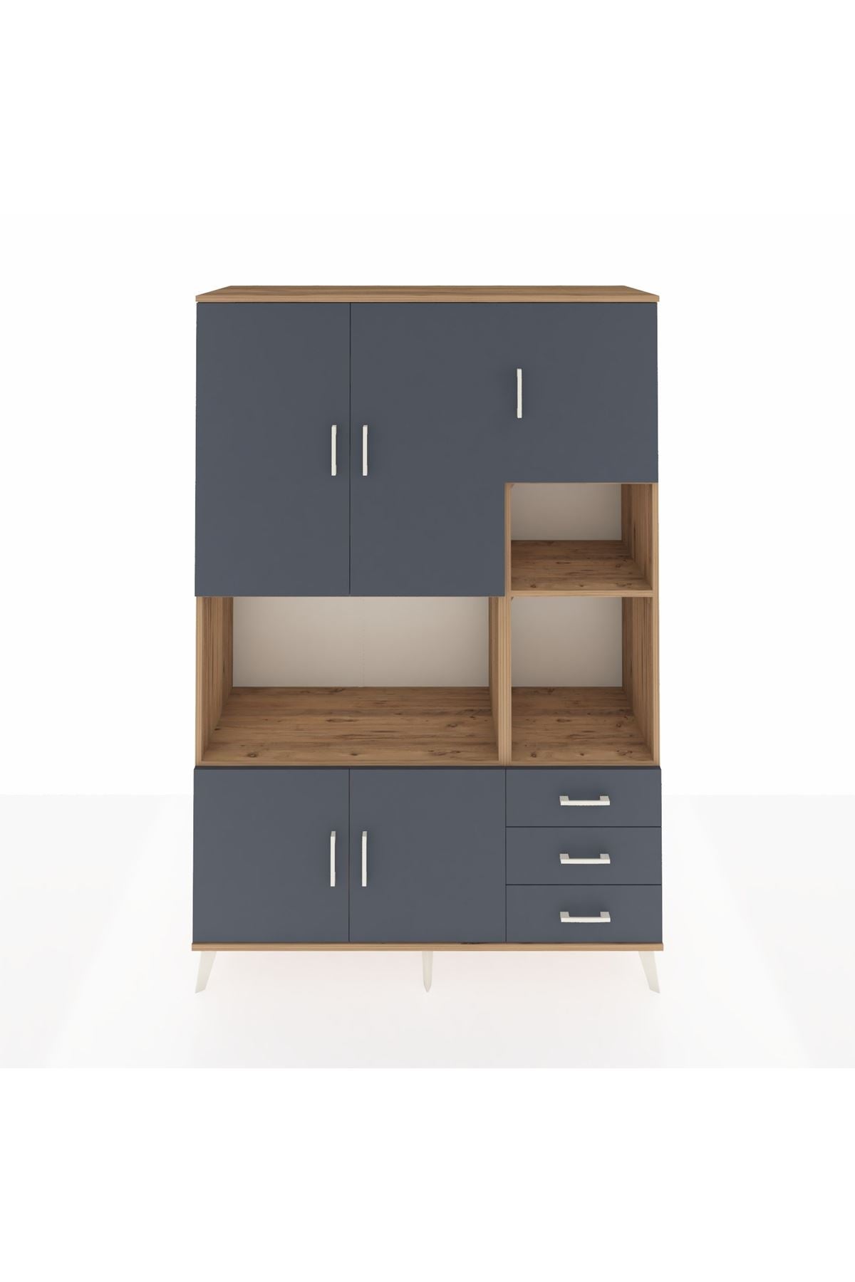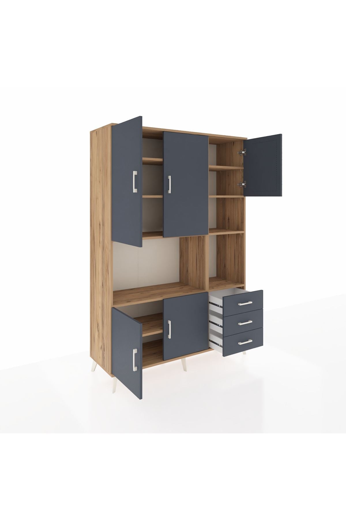 Hyperion Dolap 9 Raflı 3 Çekmeceli 5 Kapaklı 132x44x195 Çam-Antrasit/Antrasit