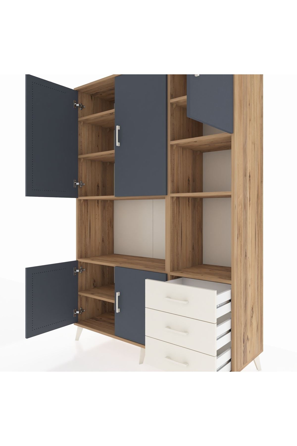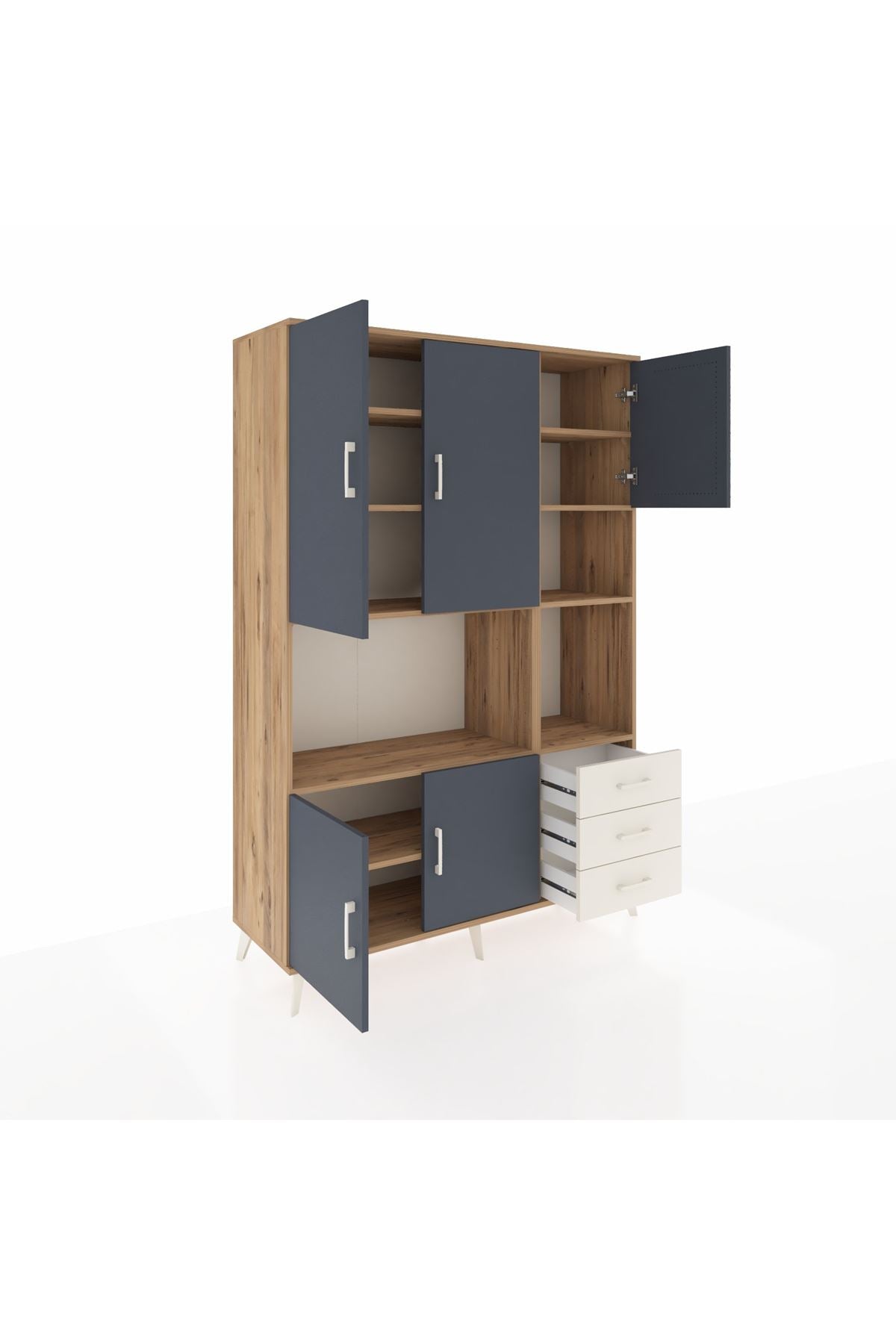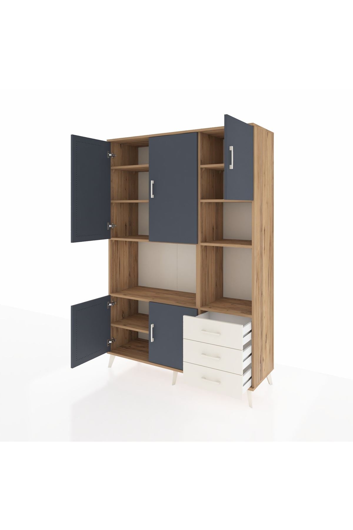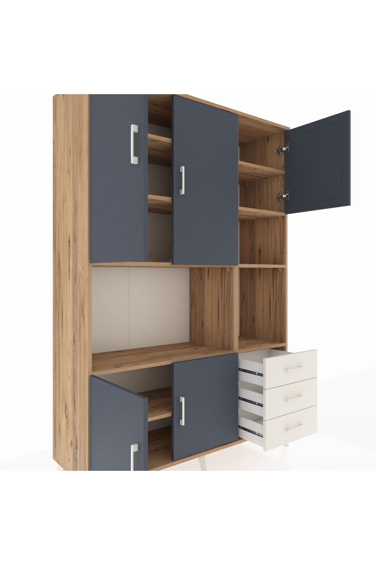 Hyperion Dolap 9 Raflı 3 Çekmeceli 5 Kapaklı 132x44x195 Çam-Antrasit/Aytaşı