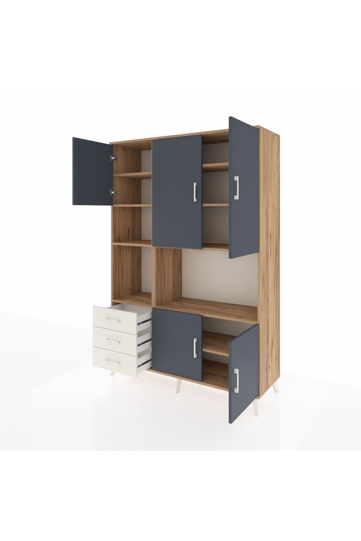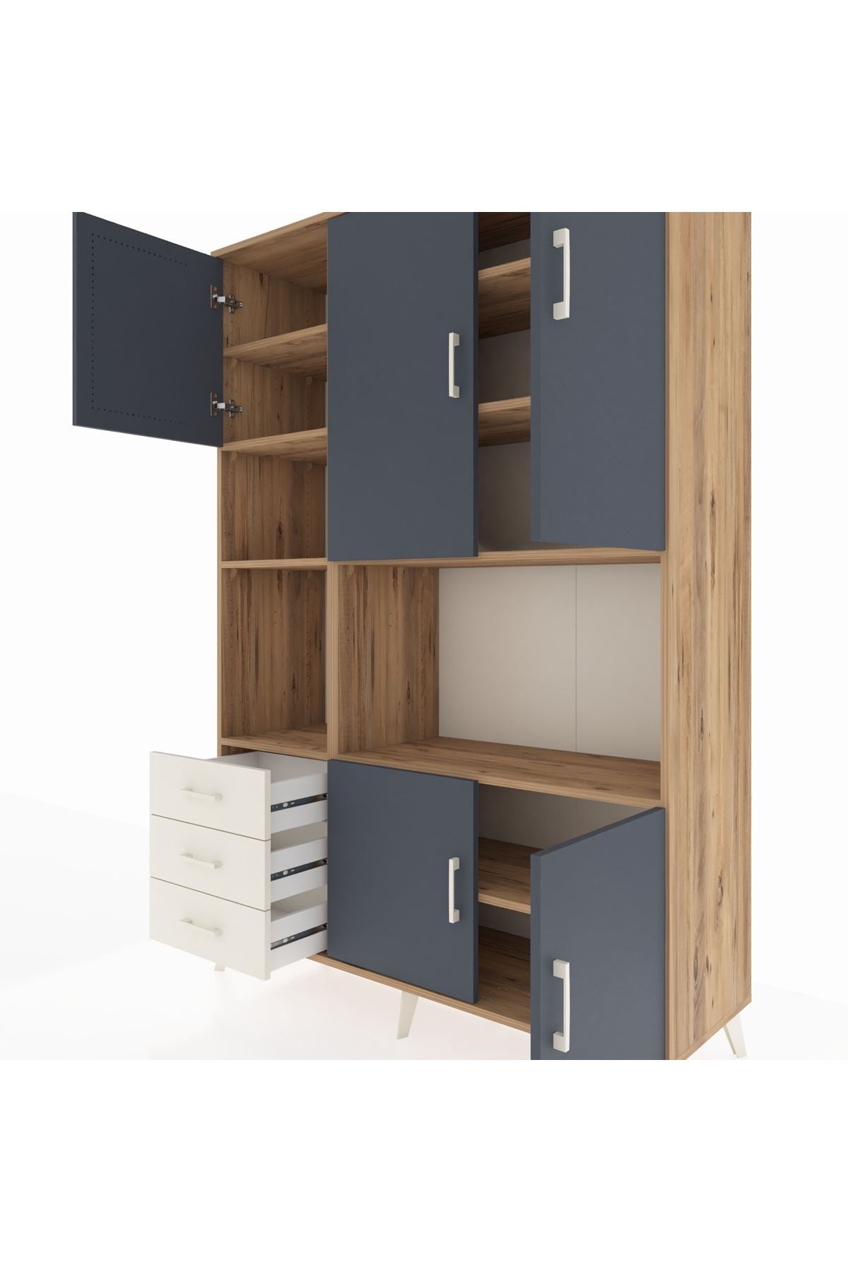 Hyperion Dolap 9 Raflı 3 Çekmeceli 5 Kapaklı 132x44x195 Çam-Antrasit/Aytaşı