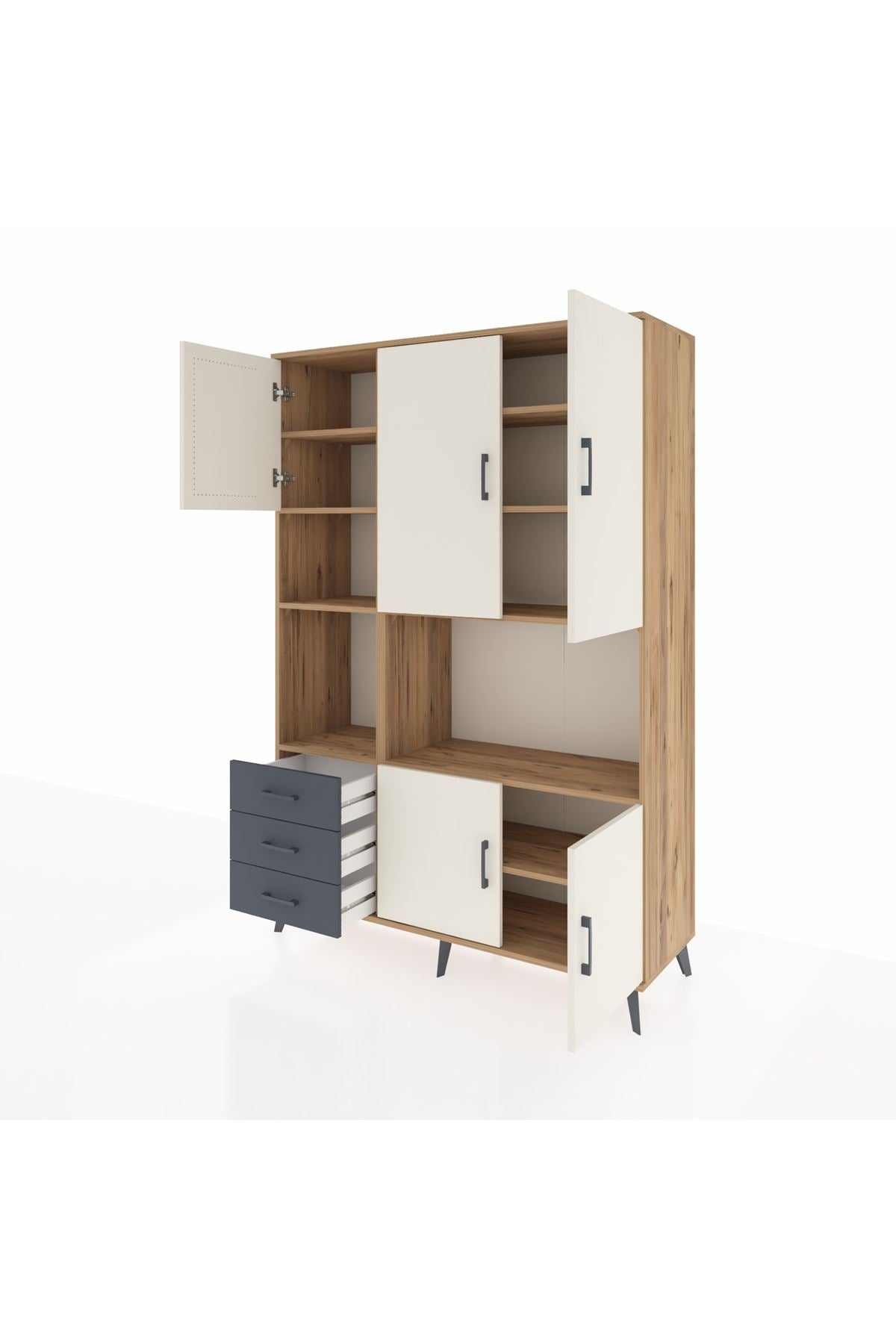 Hyperion Dolap 9 Raflı 3 Çekmeceli 5 Kapaklı 132x44x195 Çam-Aytaşı/Antrasit – Fonksiyonellik ve Şıklık Bir Arada
