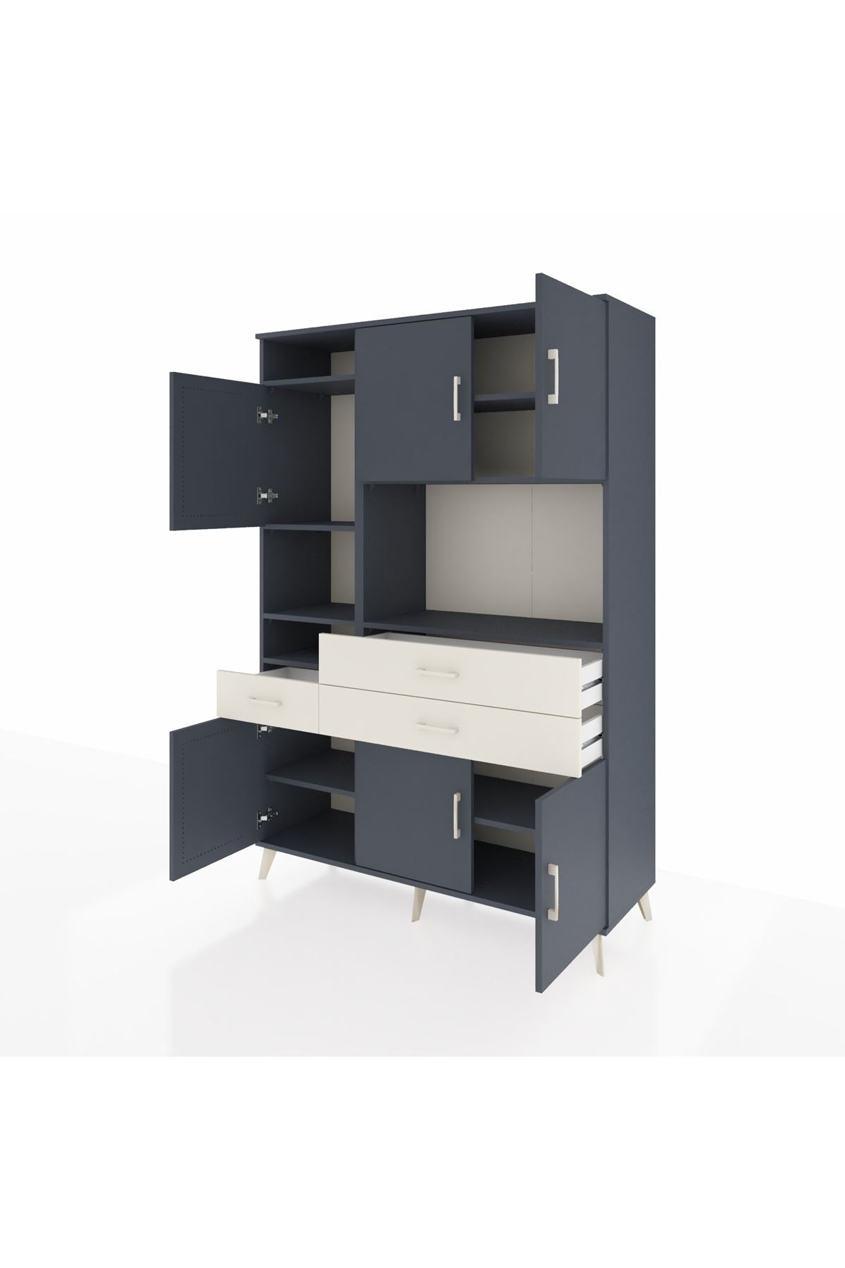 Hyperion Dolap 9 Raflı 3 Çekmeceli 6 Kapaklı 132x44x195 Antrasit-Antrasit/Aytaşı