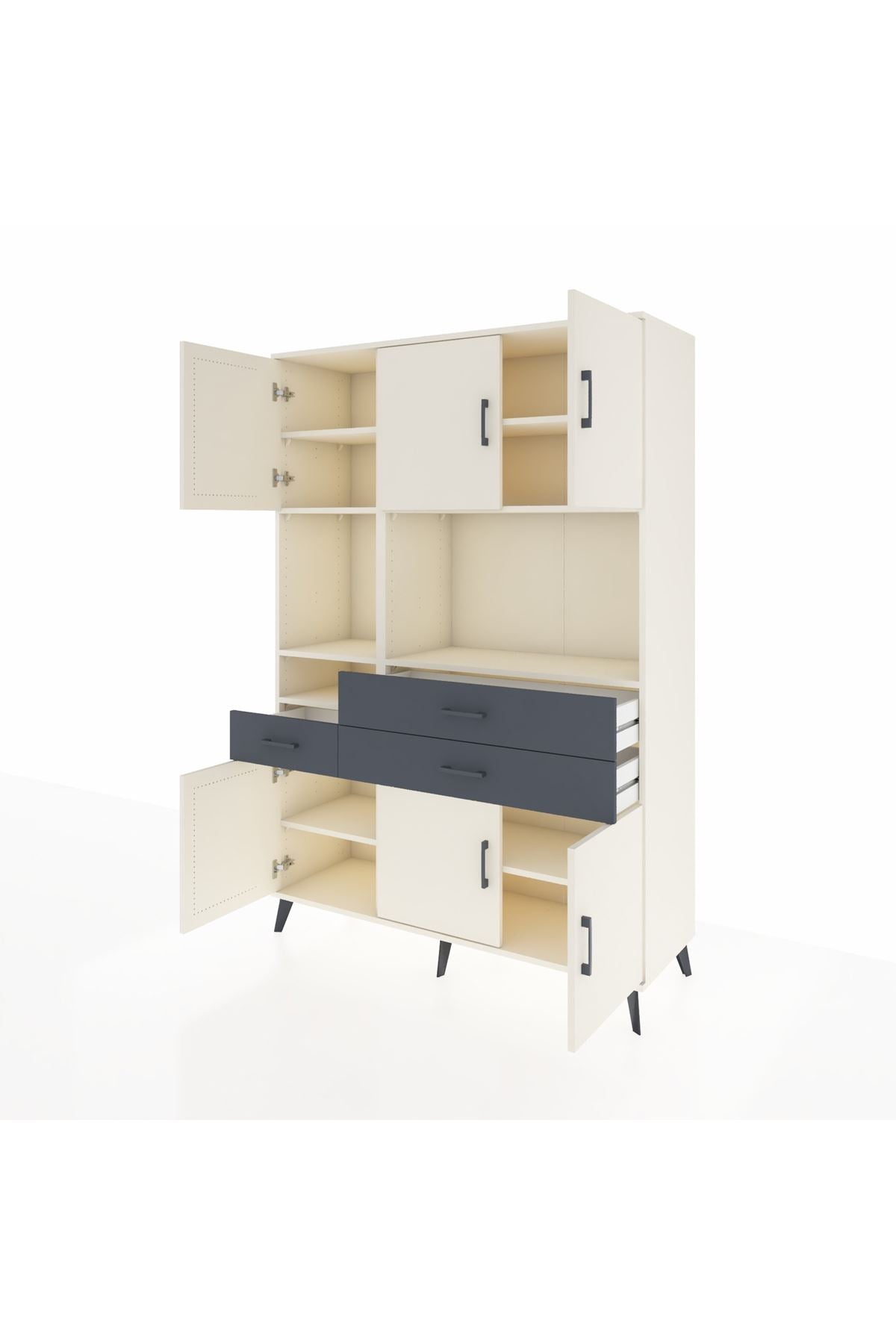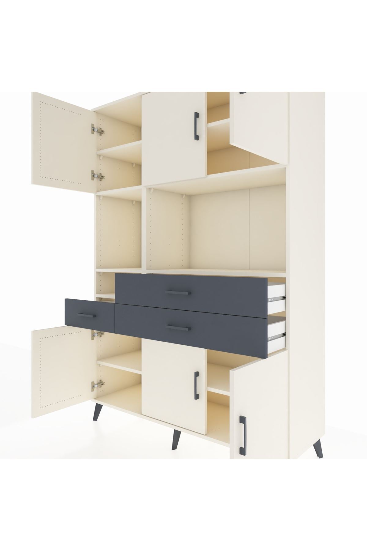Hyperion Dolap 9 Raflı 3 Çekmeceli 6 Kapaklı 132x44x195 Aytaşı-Aytaşı/Antrasit