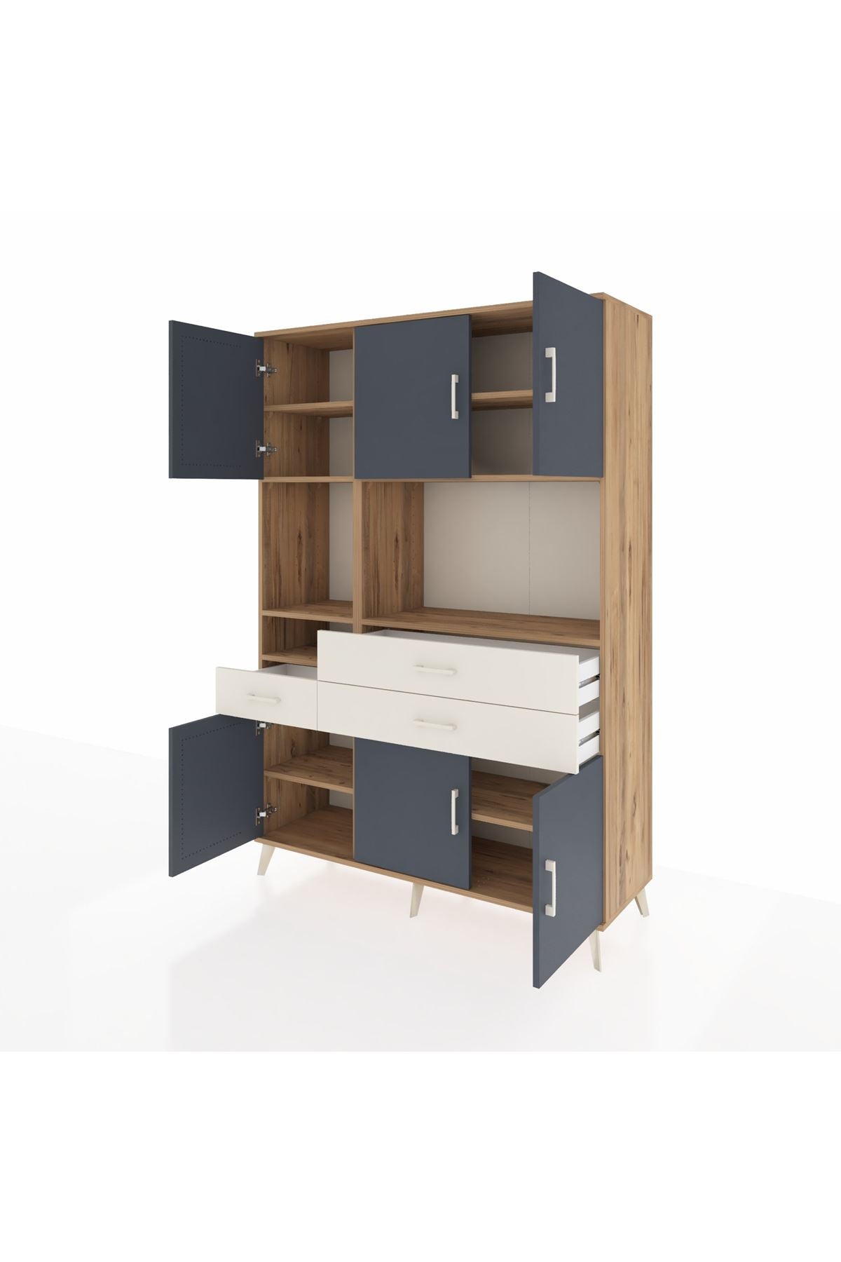 Hyperion Dolap 9 Raflı 3 Çekmeceli 6 Kapaklı 132x44x195 Çam-Antrasit/Aytaşı