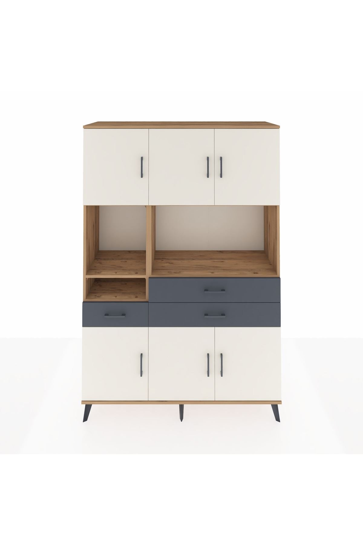 Hyperion Dolap 9 Raflı 3 Çekmeceli 6 Kapaklı 132x44x195 Çam-Aytaşı/Antrasit