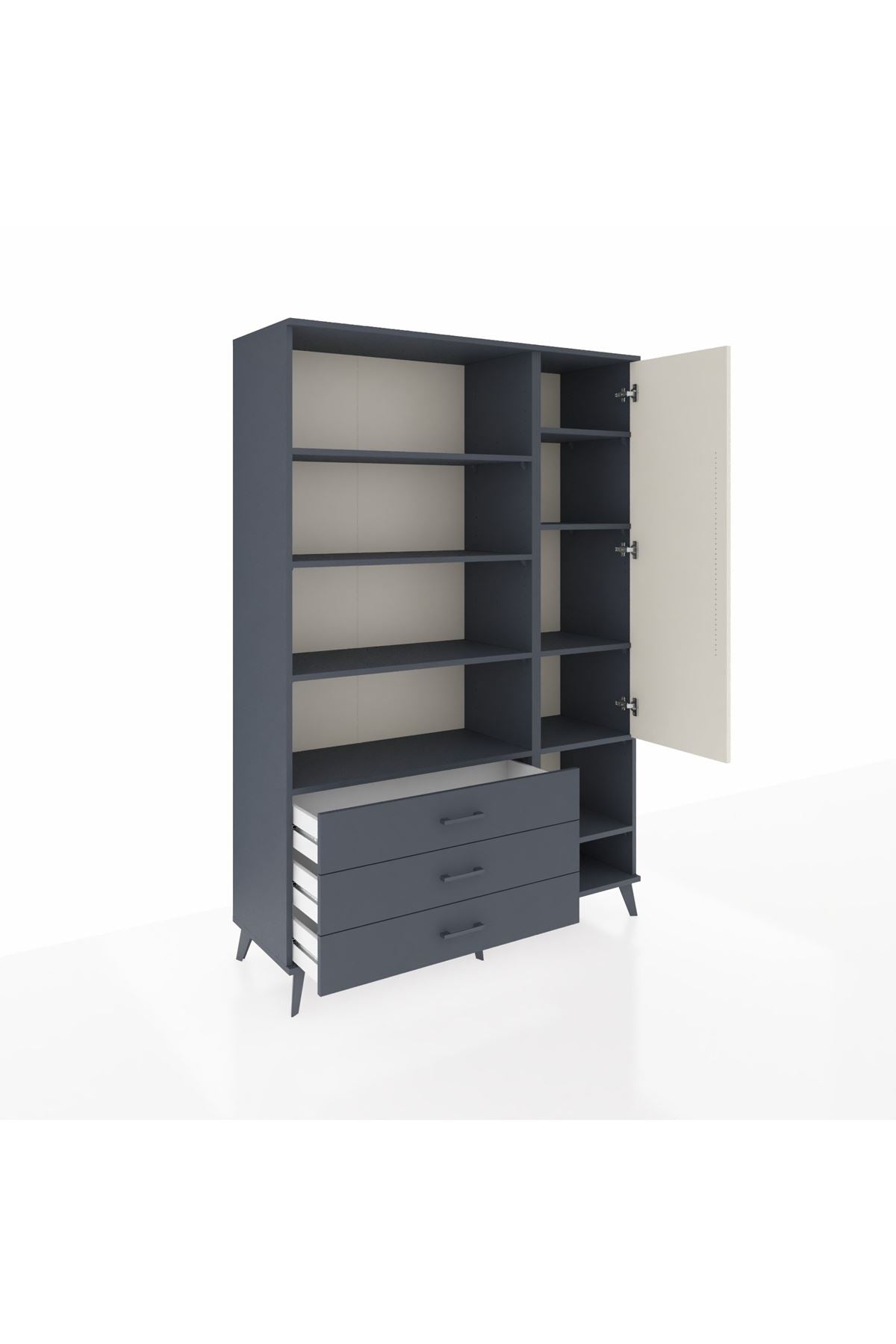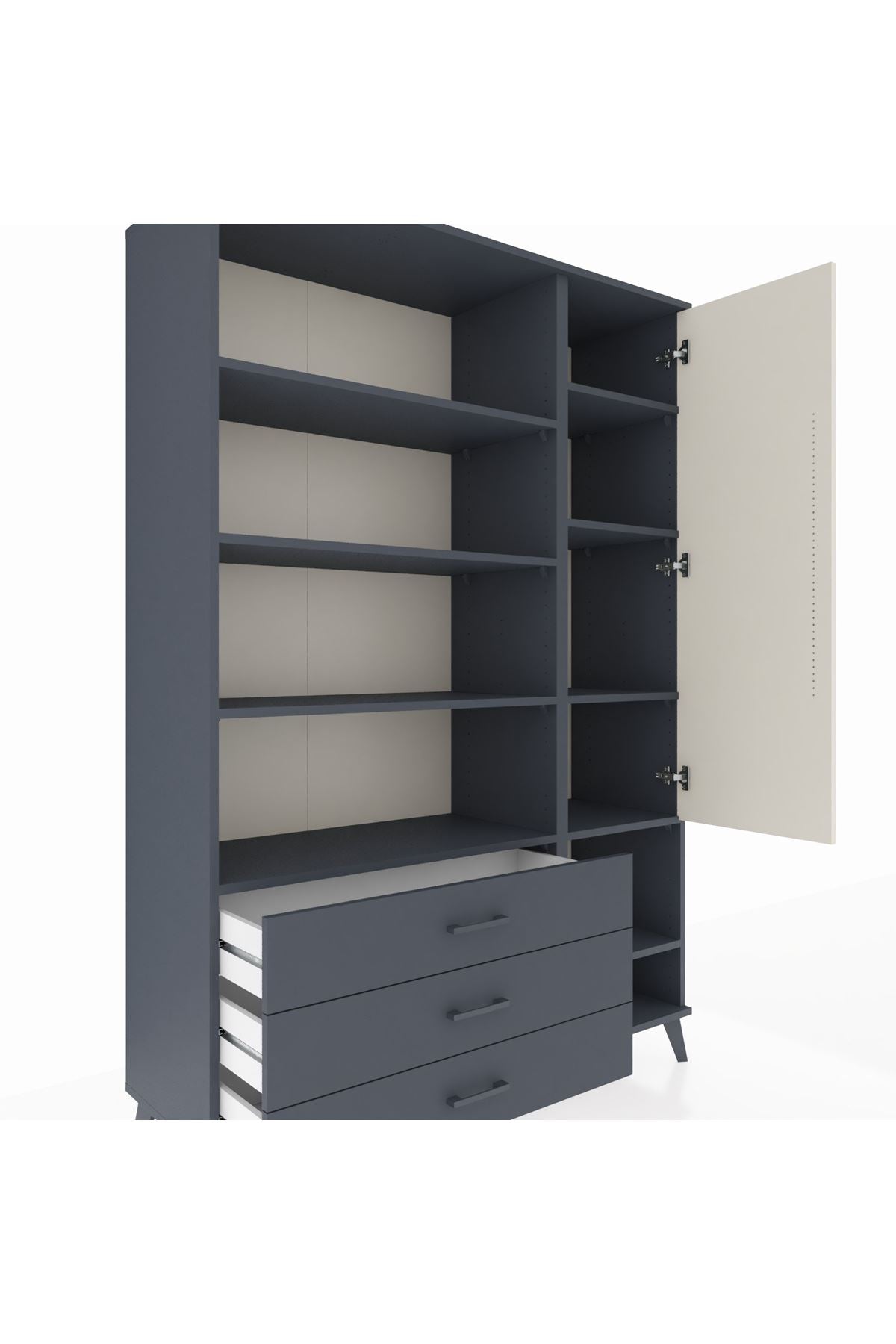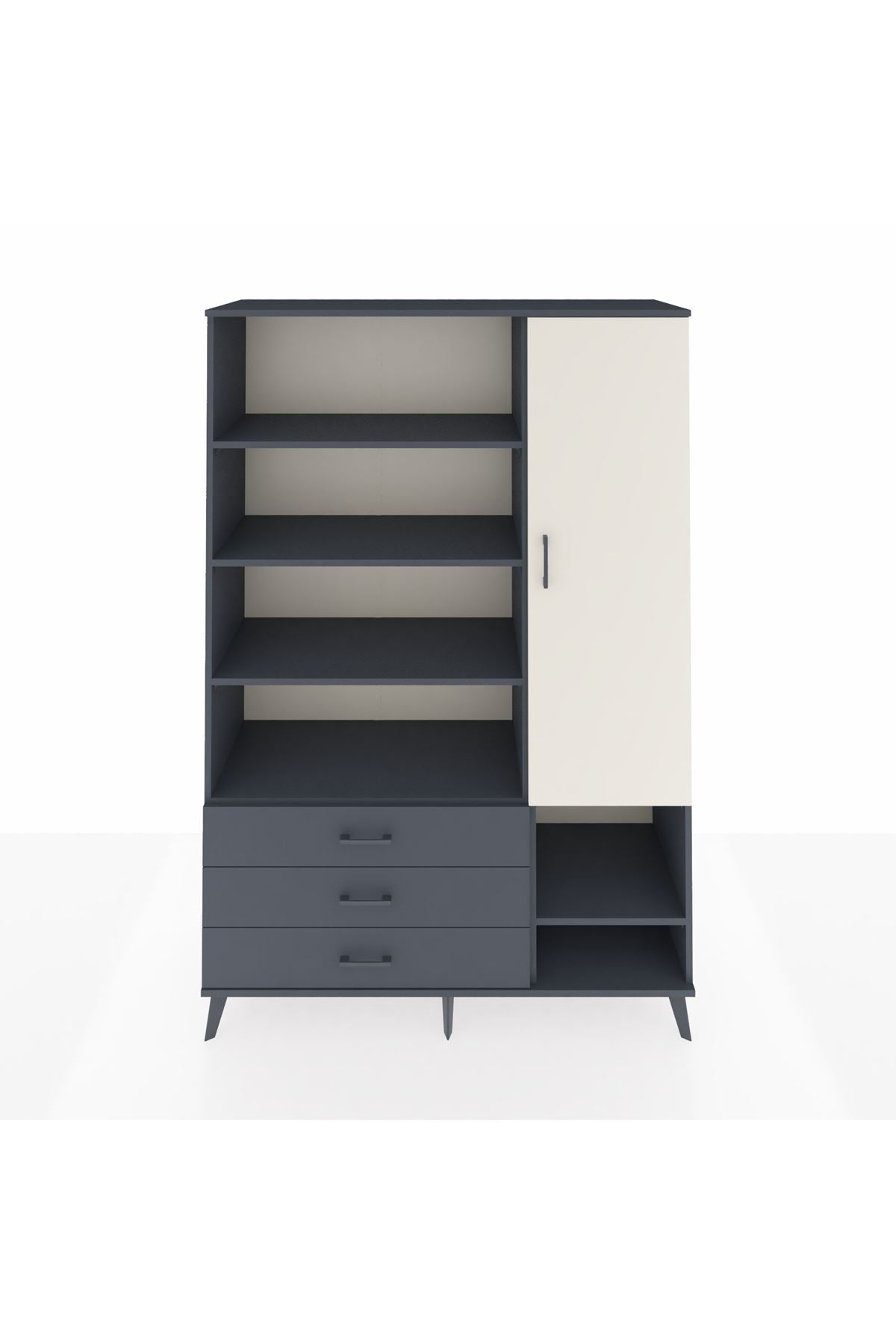Hyperion Dolap 9 Raflı 3 Çekmeceli Tek Kapaklı 132x44x195 Antrasit-Aytaşı/Antrasit