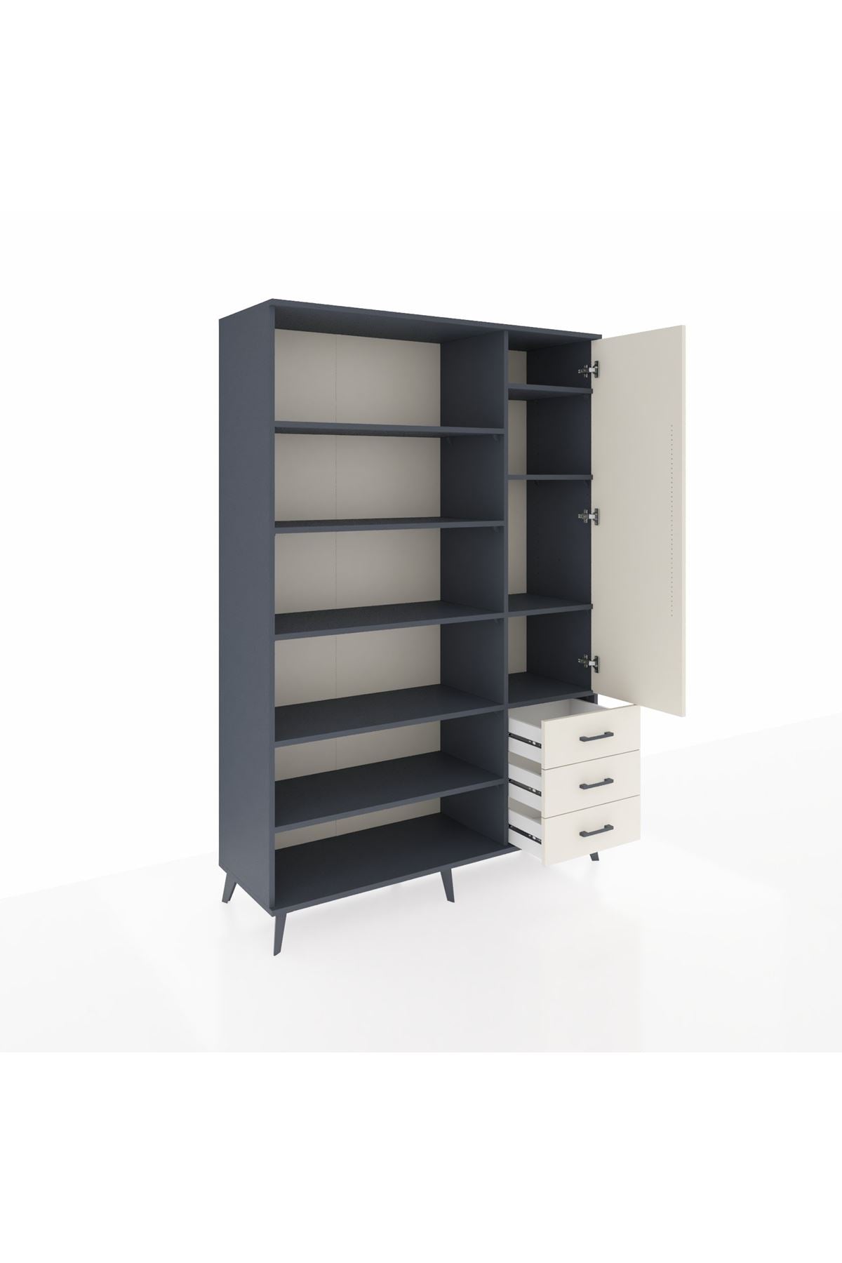 Hyperion Dolap 9 Raflı 3 Çekmeceli Tek Kapaklı 132x44x195 Antrasit-Aytaşı/Aytaşı