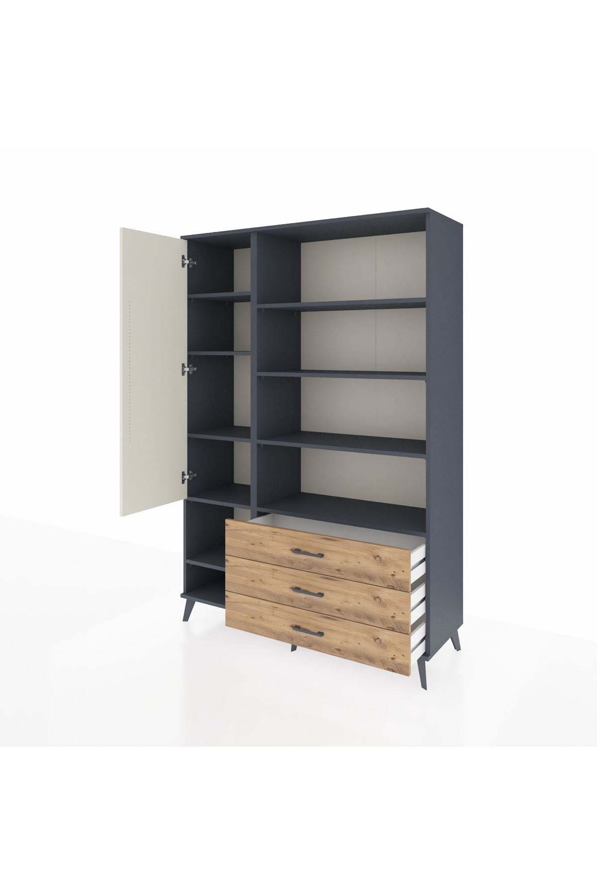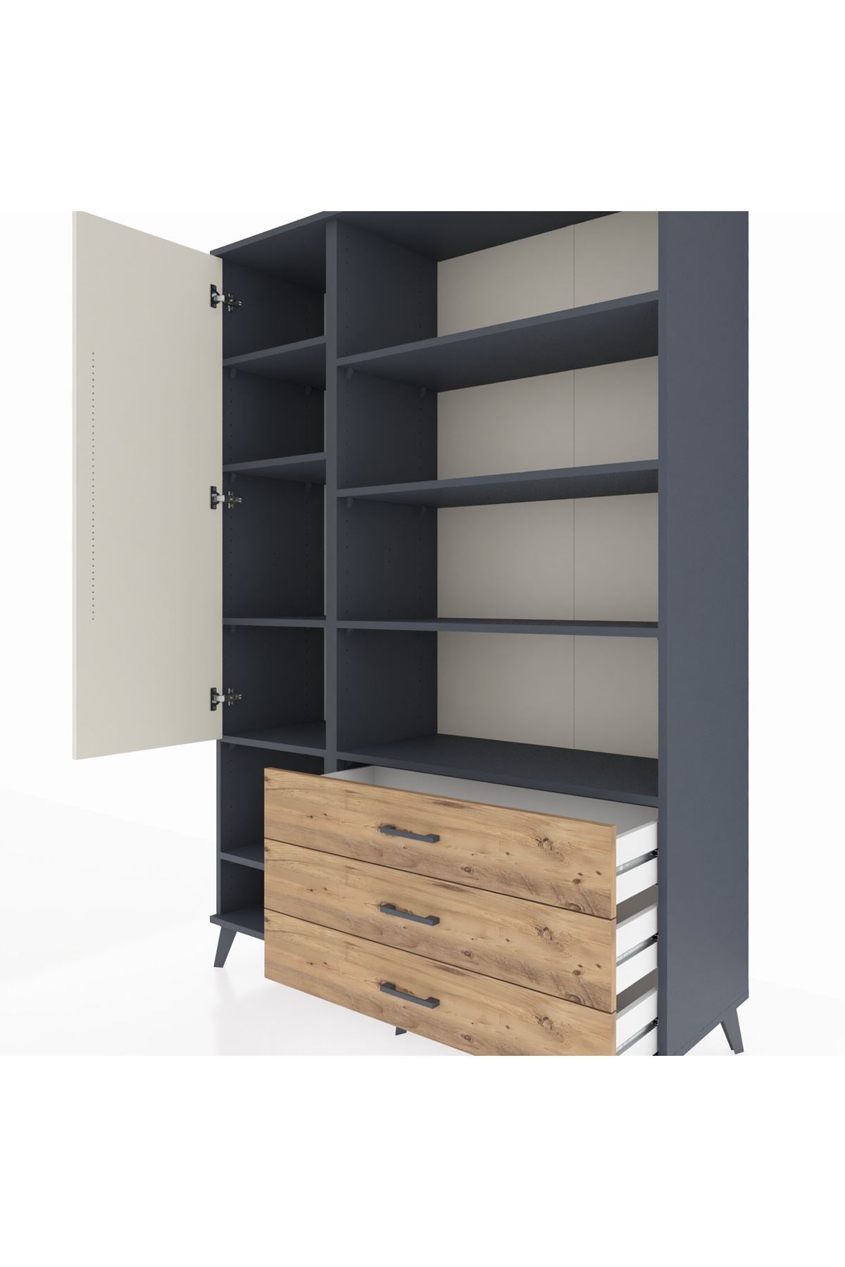 Hyperion Dolap 9 Raflı 3 Çekmeceli Tek Kapaklı 132x44x195 Antrasit-Aytaşı/Çam