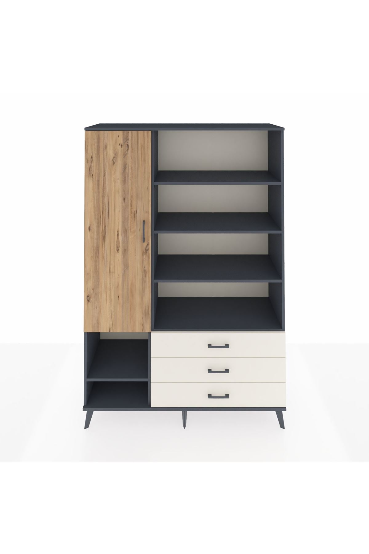 Hyperion Dolap 9 Raflı 3 Çekmeceli Tek Kapaklı 132x44x195 Antrasit-Çam/Aytaşı – Düzen ve Şıklığın Buluştuğu Tasarım