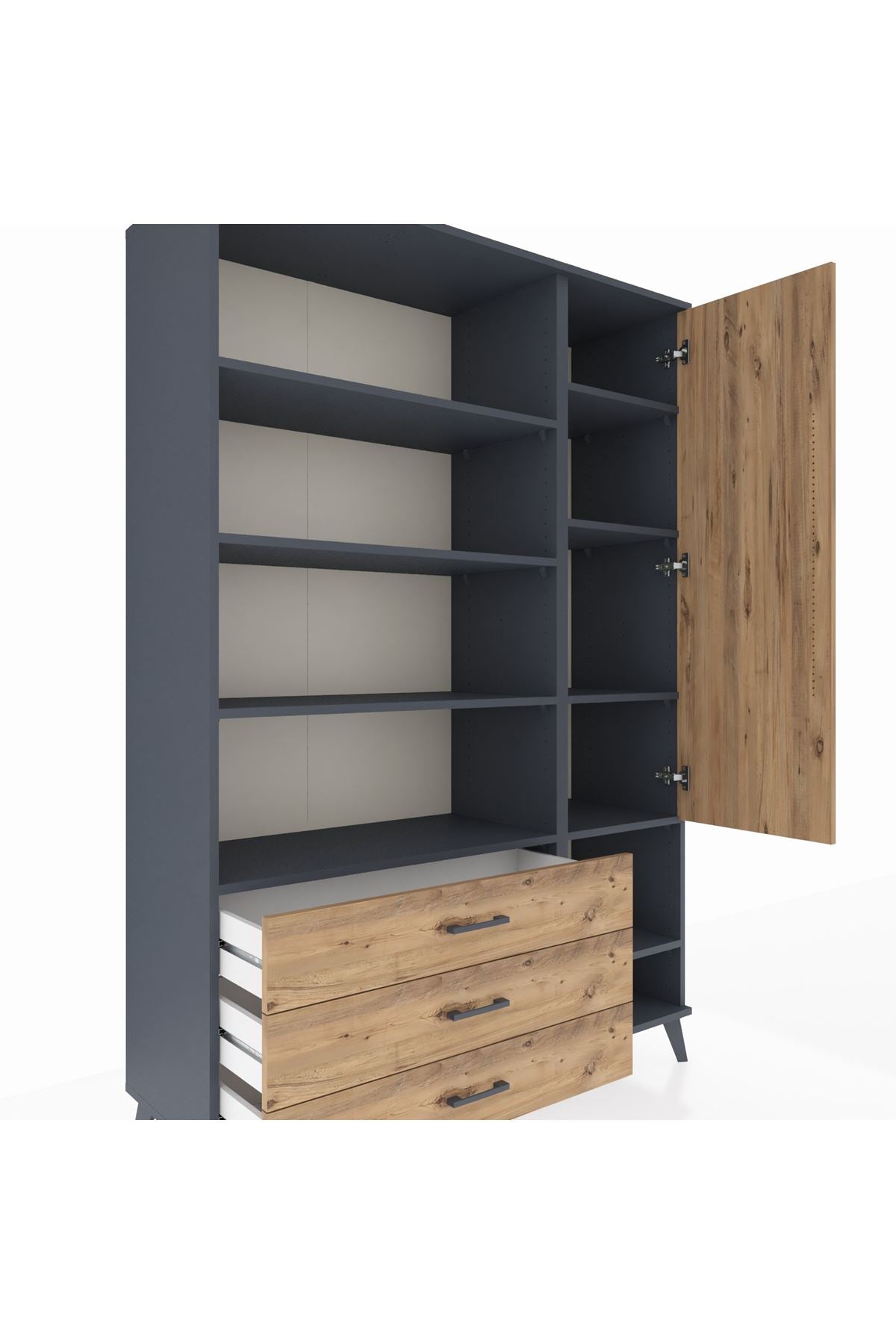 Hyperion Dolap 9 Raflı 3 Çekmeceli Tek Kapaklı 132x44x195 Antrasit-Çam/Çam