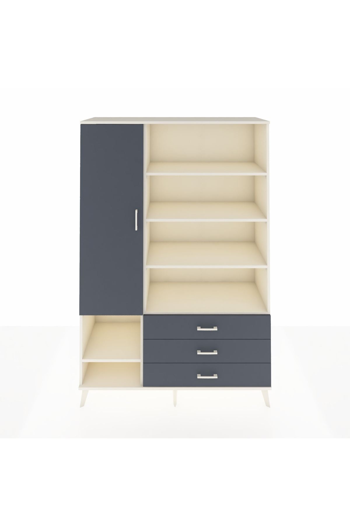 Hyperion Dolap 9 Raflı 3 Çekmeceli Tek Kapaklı 132x44x195 Aytaşı-Antrasit/Antrasit – Düzenin ve Şıklığın Buluşması