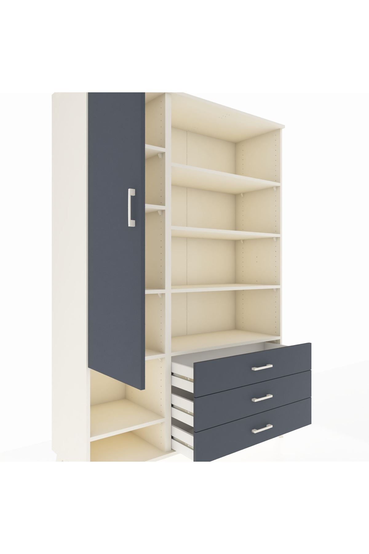 Hyperion Dolap 9 Raflı 3 Çekmeceli Tek Kapaklı 132x44x195 Aytaşı-Antrasit/Antrasit