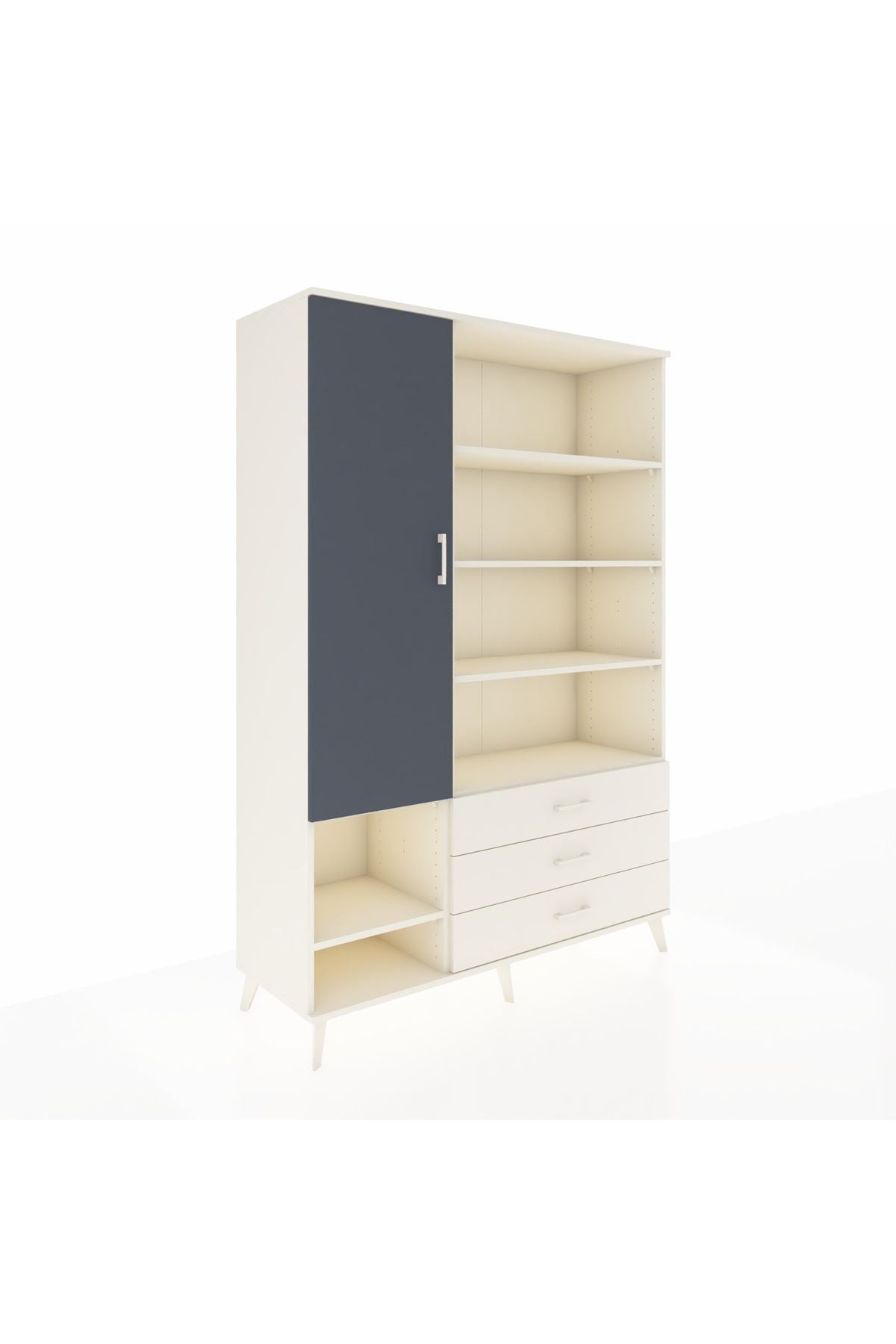 Çalışma odasında dosya, klasör ve ofis malzemelerini kategorize ederek düzen sağlar. Raflar kelepçe dosyalar, kitaplar ve dekoratif saklama kutuları için ideal yüksekliğe ayarlanabilir. Çekmeceler kırtasiye ve önemli belgelerin düzenli saklanması için güvenli bir çözüm sunar; metal kulplar sık kullanımda konfor sağlar.