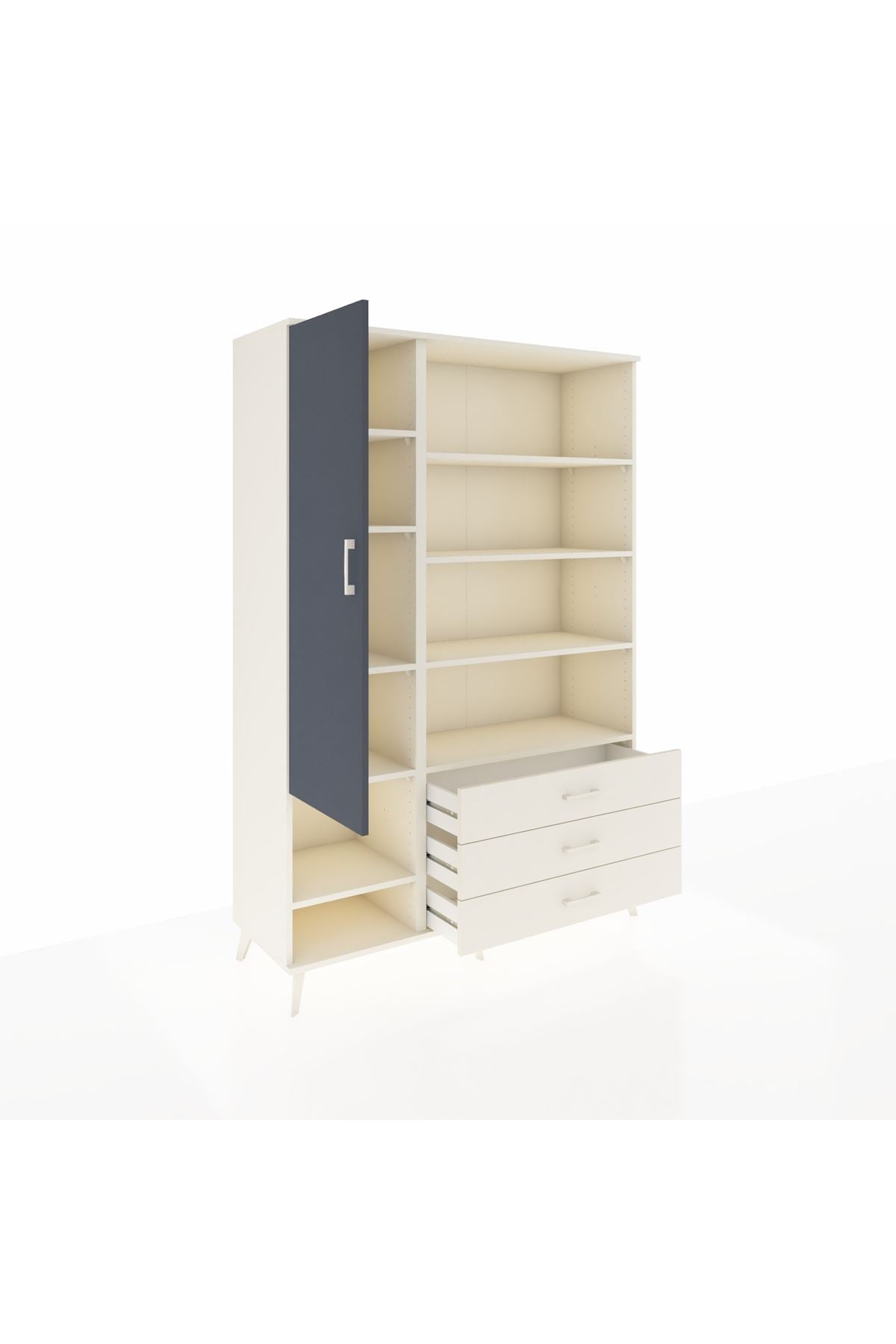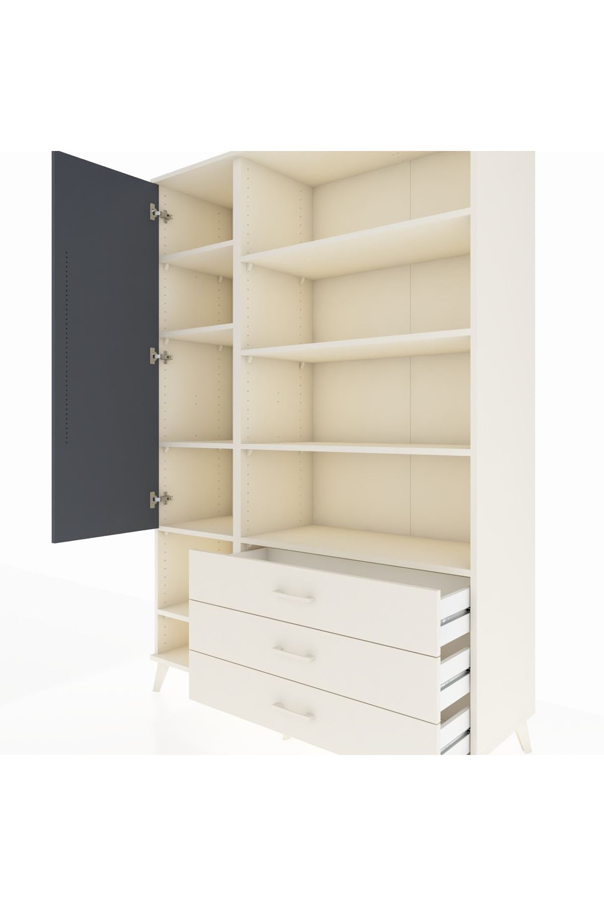 Çok fonksiyonlu düzenleme seçenekleri sayesinde kıyafet, havlu, temizlik malzemeleri veya evrak gibi eşyalar düzenli bir şekilde saklanır. Ayarlanabilir raflar sayesinde yüksek ayakkabılar, kutular veya klasörler rahatça yerleştirilebilir. Kapaklı bölüm toz ve görünürlükten korurken açık raflar sık kullanılan ürünlere hızlı erişim sağlar. Metal ayak tasarımı zeminde stabiliteyi artırır ve temizliği kolaylaştırır. Çekmece sayısının konfigüre edilebilmesi, dolabın kişisel ihtiyaçlara göre özelleştirilmesine olanak verir.