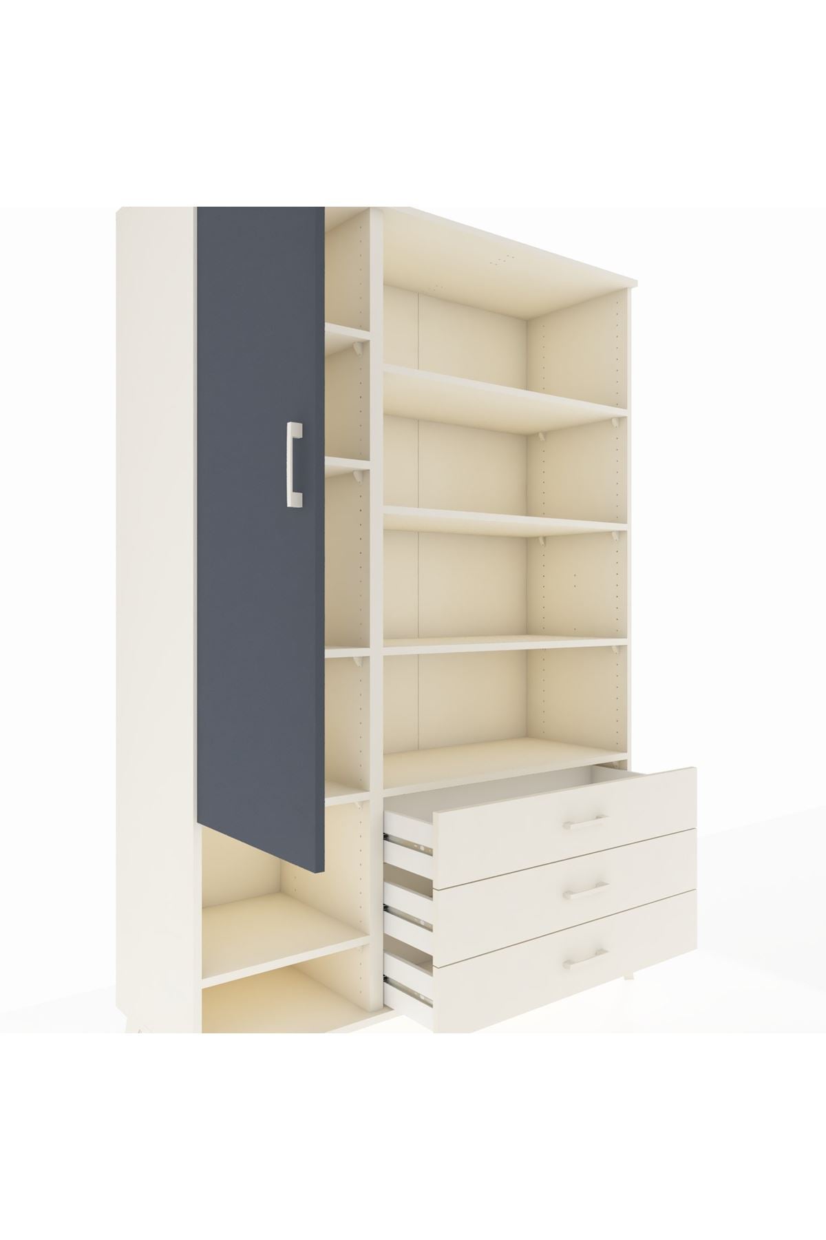 Birinci sınıf suntalam uzun ömürlü kullanım sağlar. Metal donanımlar sağlamlık katarken raflar ayarlanabilir, çekmece sayısı konfigüre edilebilir. Ürün montajındaki detaylar kalite kontrolünden geçirilmiş olup dayanıklılık ve kullanım konforu ön planda tutulmuştur.