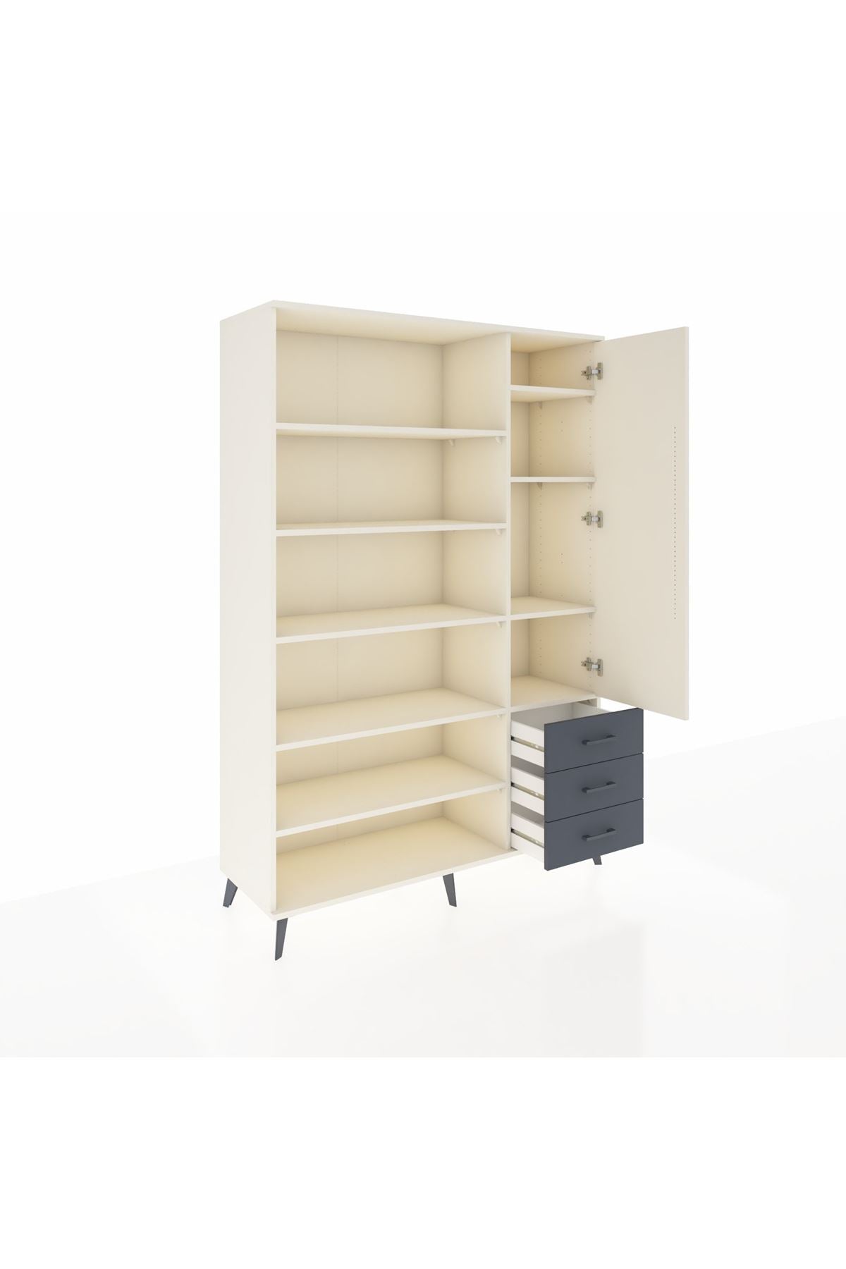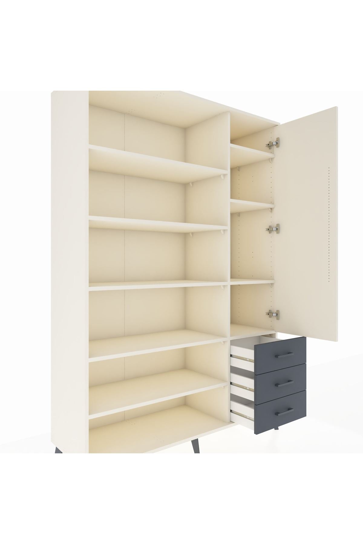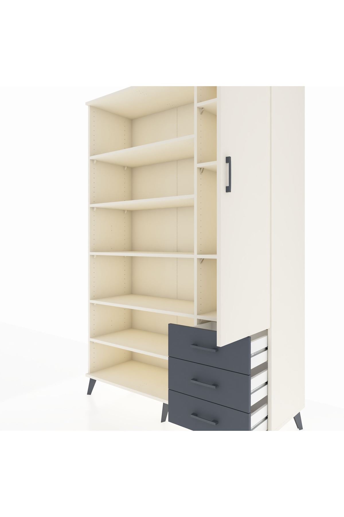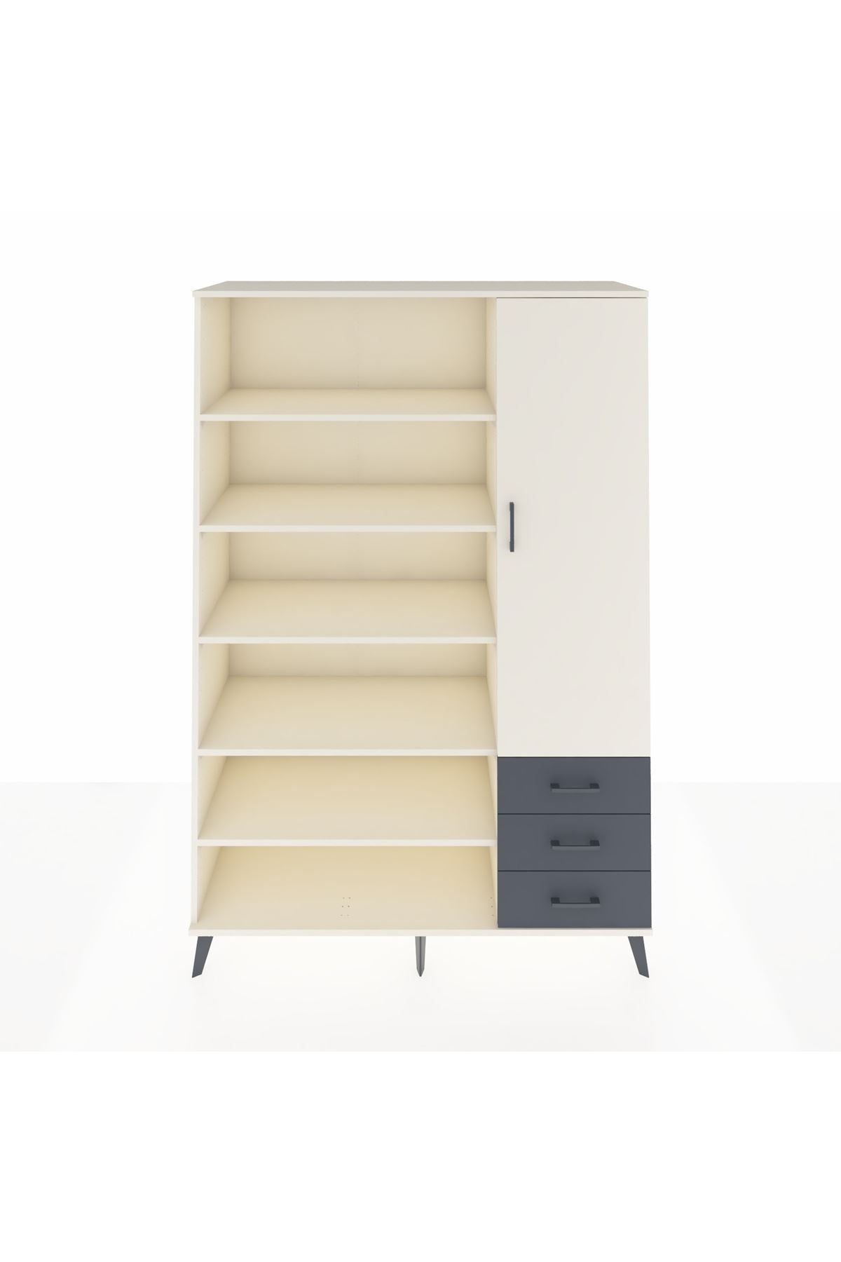 Hyperion Dolap 9 Raflı 3 Çekmeceli Tek Kapaklı 132x44x195 Aytaşı-Aytaşı/Antrasit
