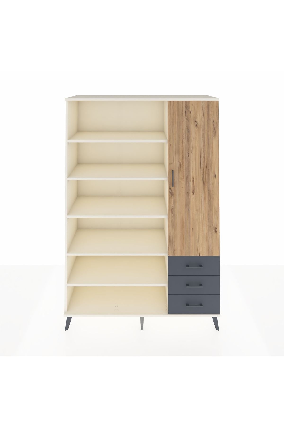 Hyperion Dolap 9 Raflı 3 Çekmeceli Tek Kapaklı 132x44x195 Aytaşı-Çam/Antrasit