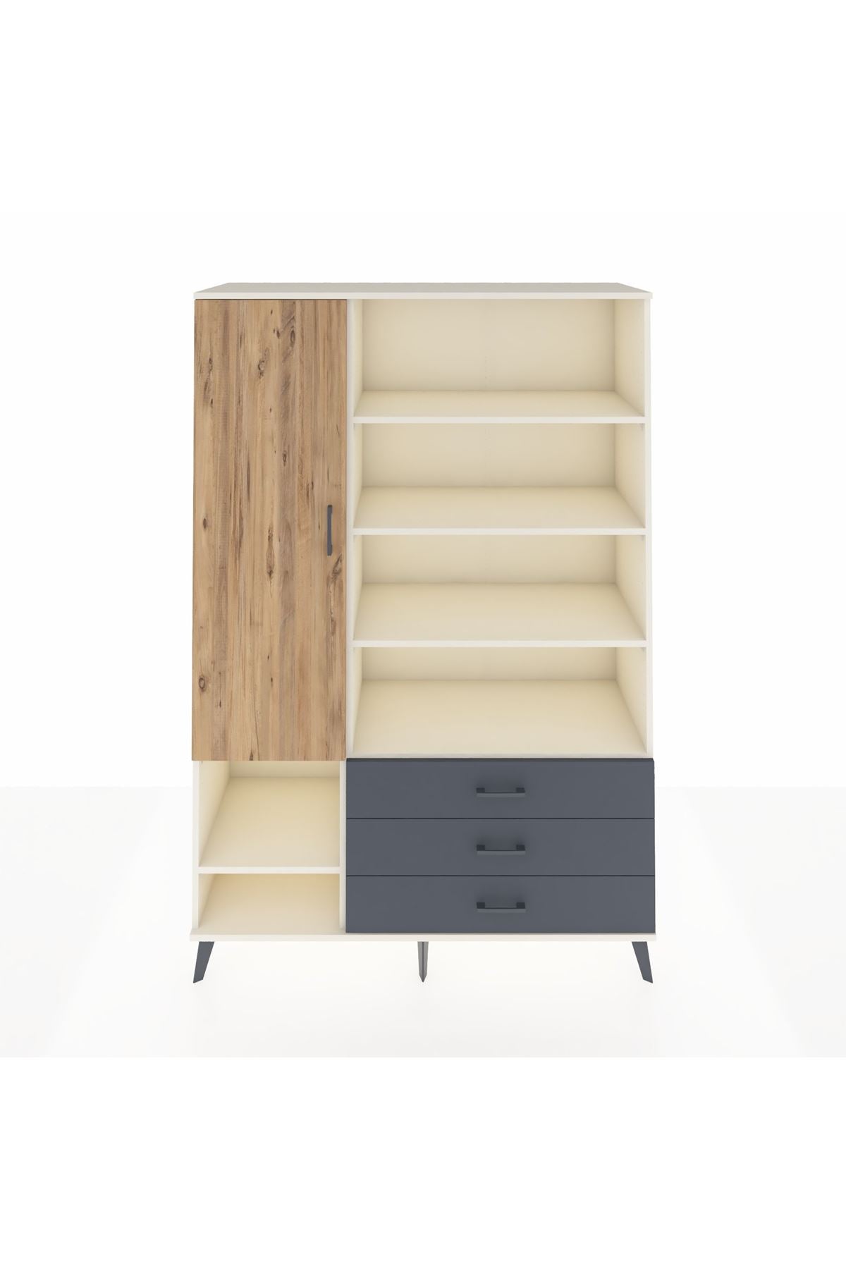 Hyperion Dolap 9 Raflı 3 Çekmeceli Tek Kapaklı 132x44x195 Aytaşı-Çam/Antrasit